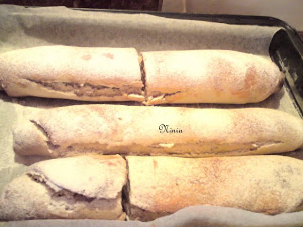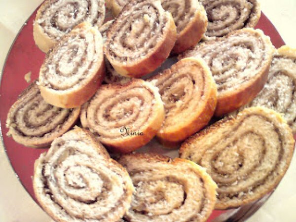 Baigli cu nuca PrecedentulUrmătorul AperitivFoarte ușor1 h 10 m Trimite unui prieten Printează pagina Adresează o întrebare autorului Postează o poză cu rețeta gătită de tine Ingrediente 8 4 oua 1 pachetel mic drojdie 300 ml lapte 200 ml ulei 5 linguri de zahar 3 pliculete zahar vanilat 1 kg faina 1 praf de copt putina sare UMPLUTURA 400 g nuca macinata 350 g zahar 150 ml lapte TOPPING 4-5 galbenuse de ou