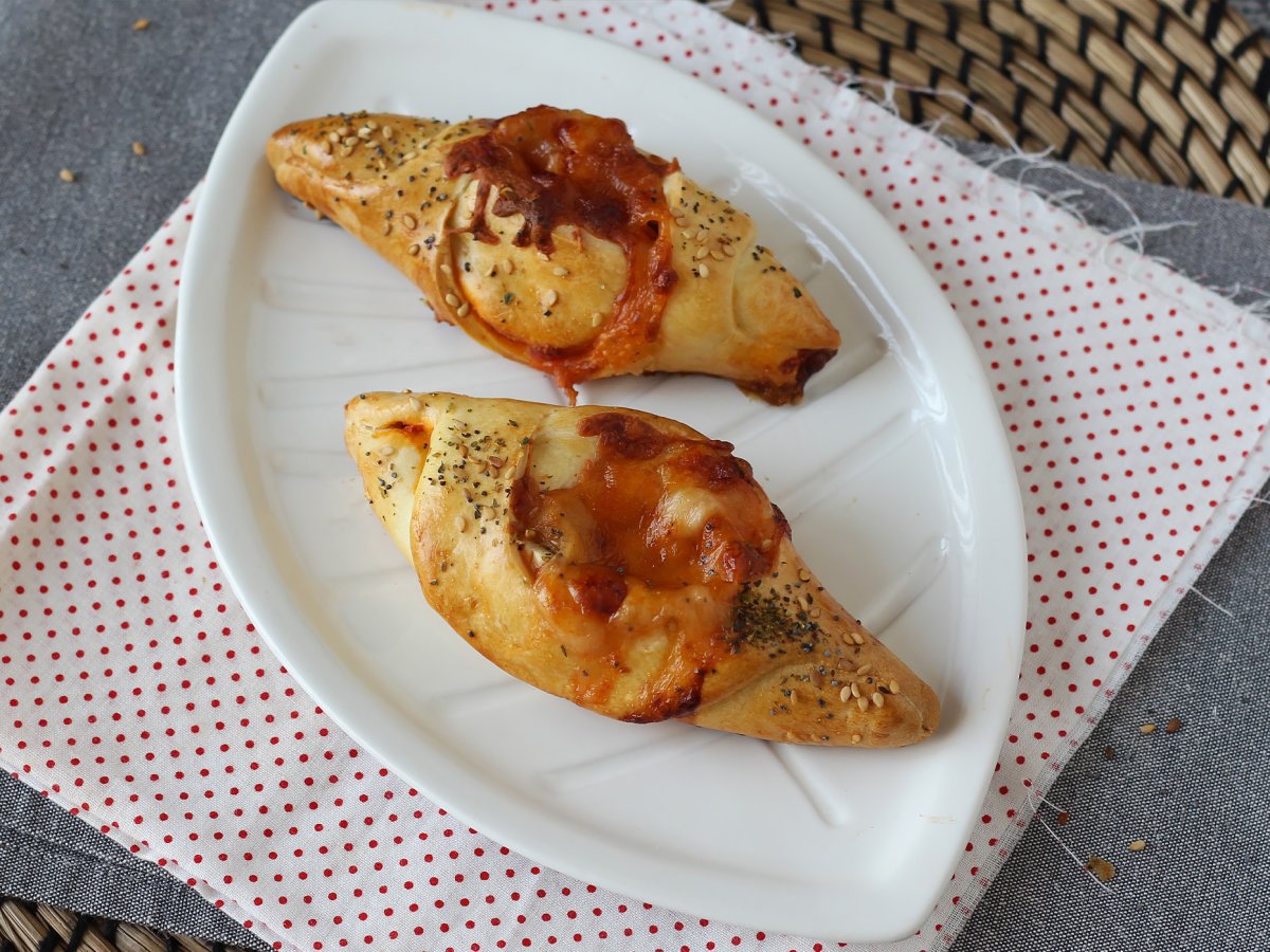 O idee pentru o prezentare originală, micuțele noastre bărci în stil pizza! O rețetă grozavă de făcut cu copiii, deoarece aceste pâinici vor fi tăiate în formă de barcă. În interior, sunt ornate generos cu sos de roșii, șuncă și mozzarela. Urmați indicațiile pentru a face această rețetă pas cu pas ;-)