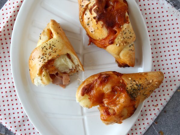 Bărcuțe în stil pizza, umplute cu sos de roșii, șuncă și mozzarella