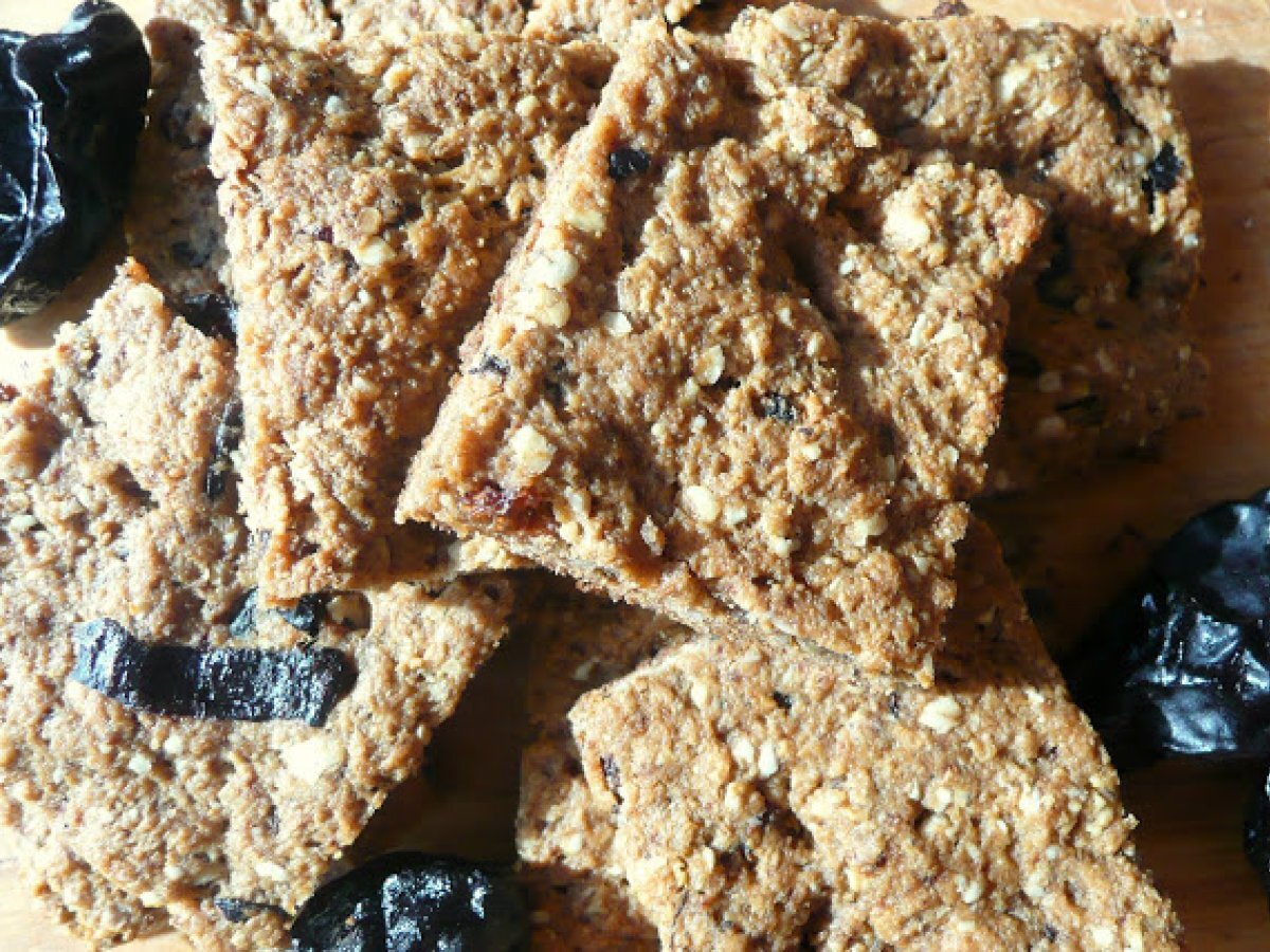 Biscuiti cu prune si stafide PrecedentulUrmătorul AperitivFoarte ușor50 min Trimite unui prieten Printează pagina Adresează o întrebare autorului Postează o poză cu rețeta gătită de tine Ingrediente 4 200 g faina de cereale amestecate 100 g fulgi de ovaz un pumn mai mare de prune uscate alt pumn de stafide 2 cubulete de unt 1 ou cateva linguri de lapte un pic de sare un varf de lingurita praf de copt