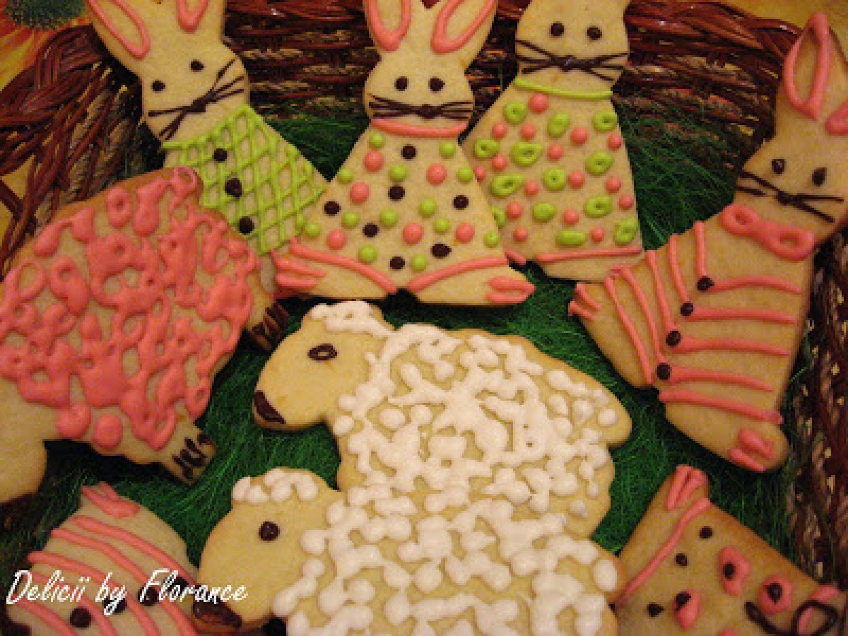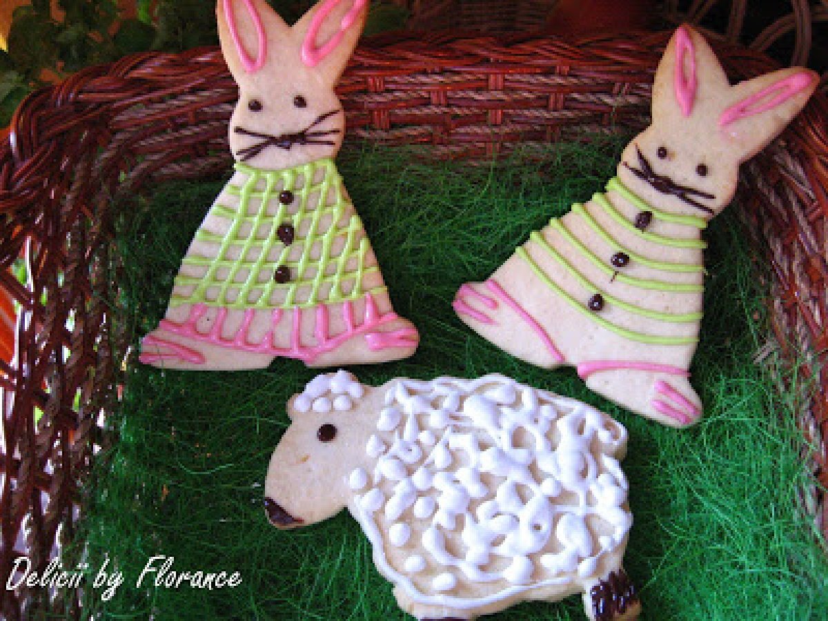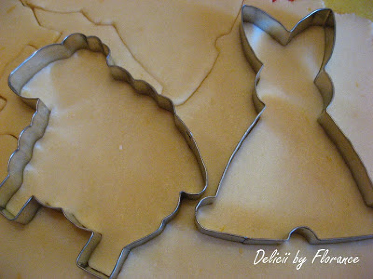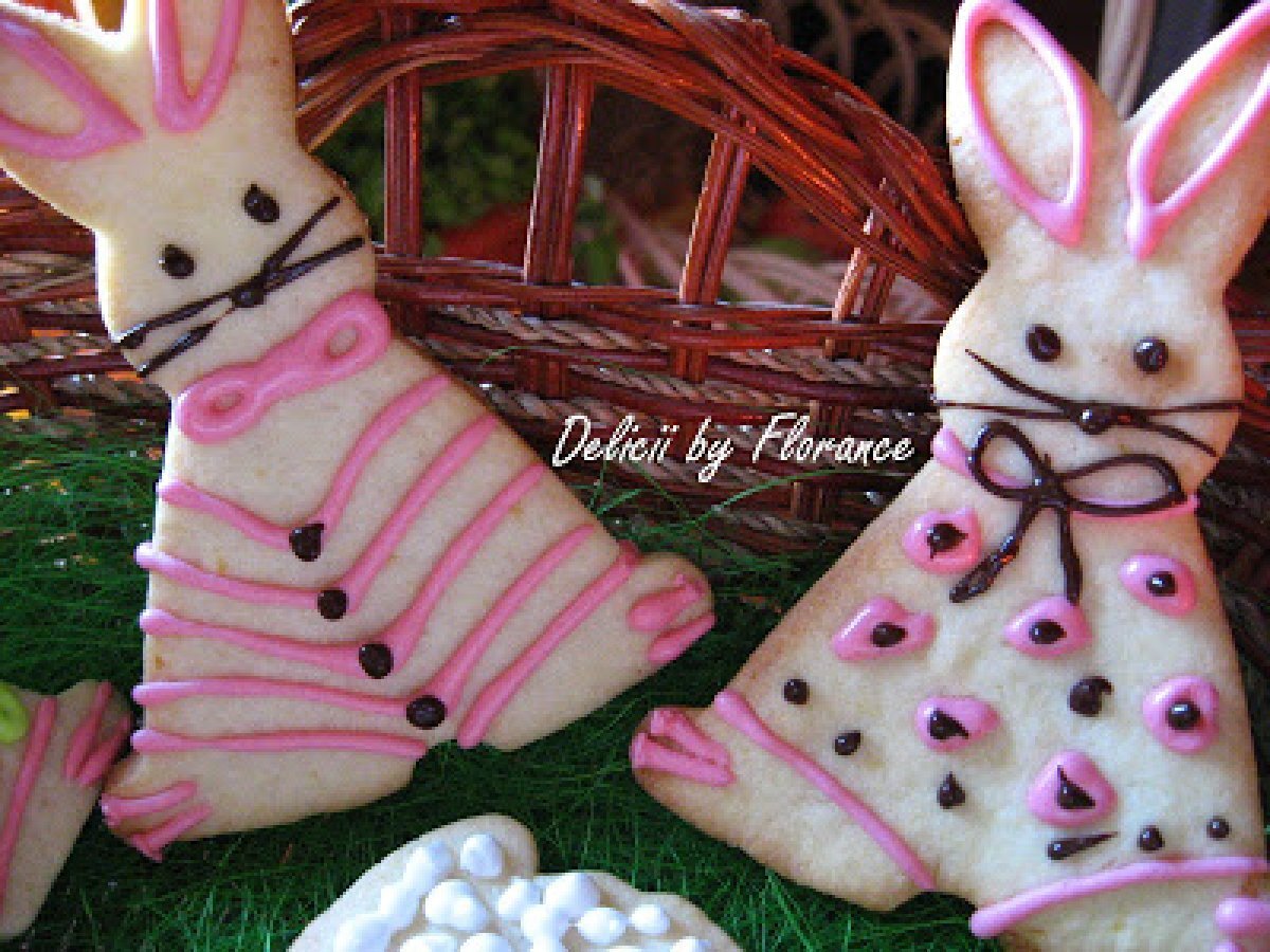 Biscuiti iepuras de paste PrecedentulUrmătorul AperitivFoarte ușor35 min Trimite unui prieten Printează pagina Adresează o întrebare autorului Postează o poză cu rețeta gătită de tine Ingrediente 4 300 g faina 150 g unt 100 g zahar pudra 1 ou zahar vanilat coaja rasa de lamaie 1 esenta vanilie un praf sare Pt. glazura: 200 g zahar pudra 1 albus ou 1 lingura zeama de lamaie