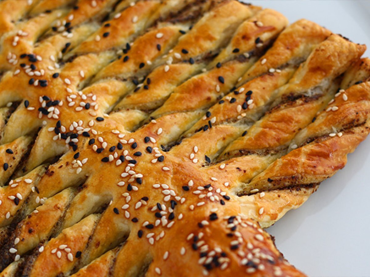 Desfaceti un foietaj dreptunghiular si intindeti peste el tapenade