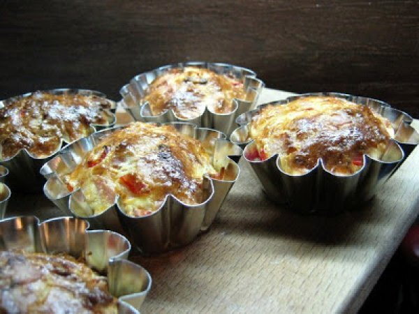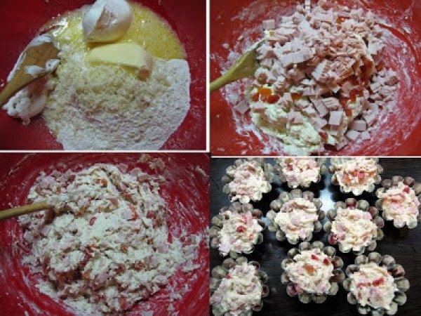 Briose aperitiv cu sunca si ardei PrecedentulUrmătorul AperitivFoarte ușor1 h 10 m Trimite unui prieten Printează pagina Adresează o întrebare autorului Postează o poză cu rețeta gătită de tine Ingrediente 4 250 g sunca de Praga sau jambon 1 ardei rosu mare 300 g faina 1 pliculet cu drojdie uscata 250 ml smantana 125 g unt topit 1 ou 60 g cascaval ras sare, piper, ulei pentru forme 1 ou pentru uns desupra
