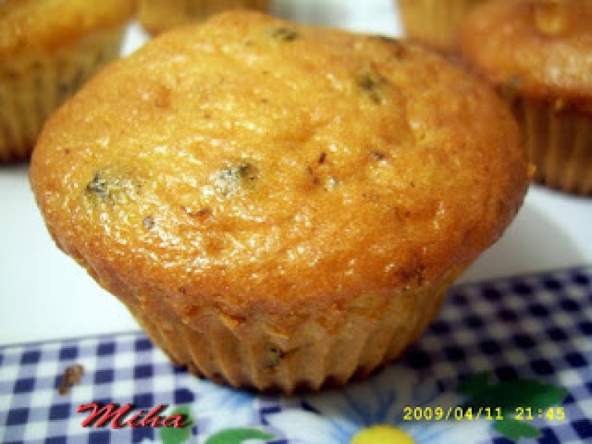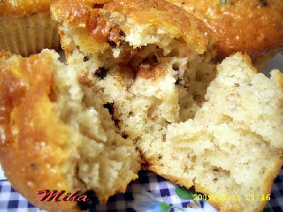 Briose cu afine si banane PrecedentulUrmătorul AperitivFoarte ușor1 oră Trimite unui prieten Printează pagina Adresează o întrebare autorului Postează o poză cu rețeta gătită de tine Ingrediente 2 2 oua 150 ml iaurt 100 g zahar 50 g unt 1 plic zahar vanilat 1 banana 1 lingura bilute de ciocolata 2 linguri de afine 1 plic praf de copt faina cat sa iasa un aluat mai gros decat cel de clatite (cca 150 g)