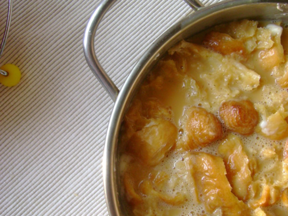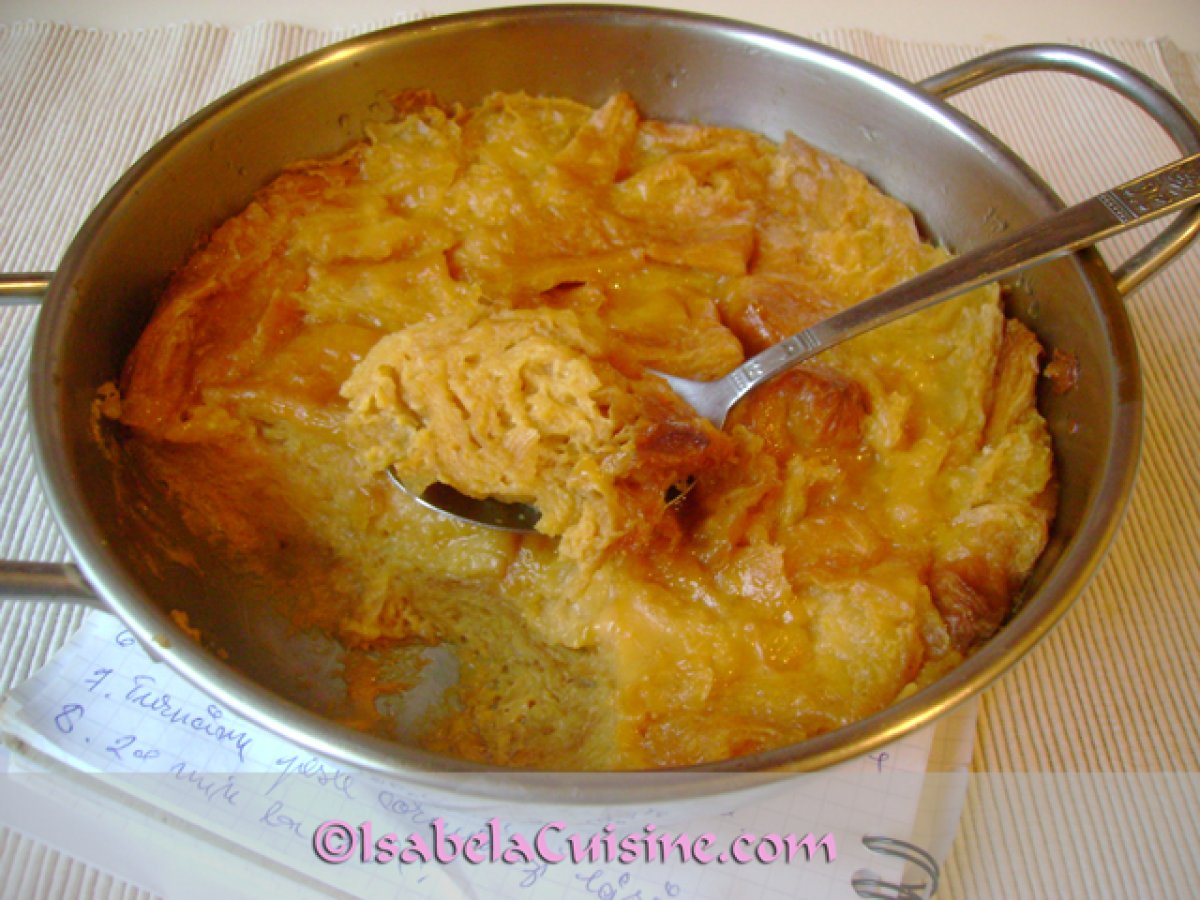 Budinca de croissante caramelizata PrecedentulUrmătorul AperitivFoarte ușor30 min Trimite unui prieten Printează pagina Adresează o întrebare autorului Postează o poză cu rețeta gătită de tine Este un desert tipic eneglezesc, dupa varianta budincii de paine. Ingrediente 2 2 croissante simple 100 g zahar 30 ml apa (2 linguri) 250 ml lapte gras 2 oua