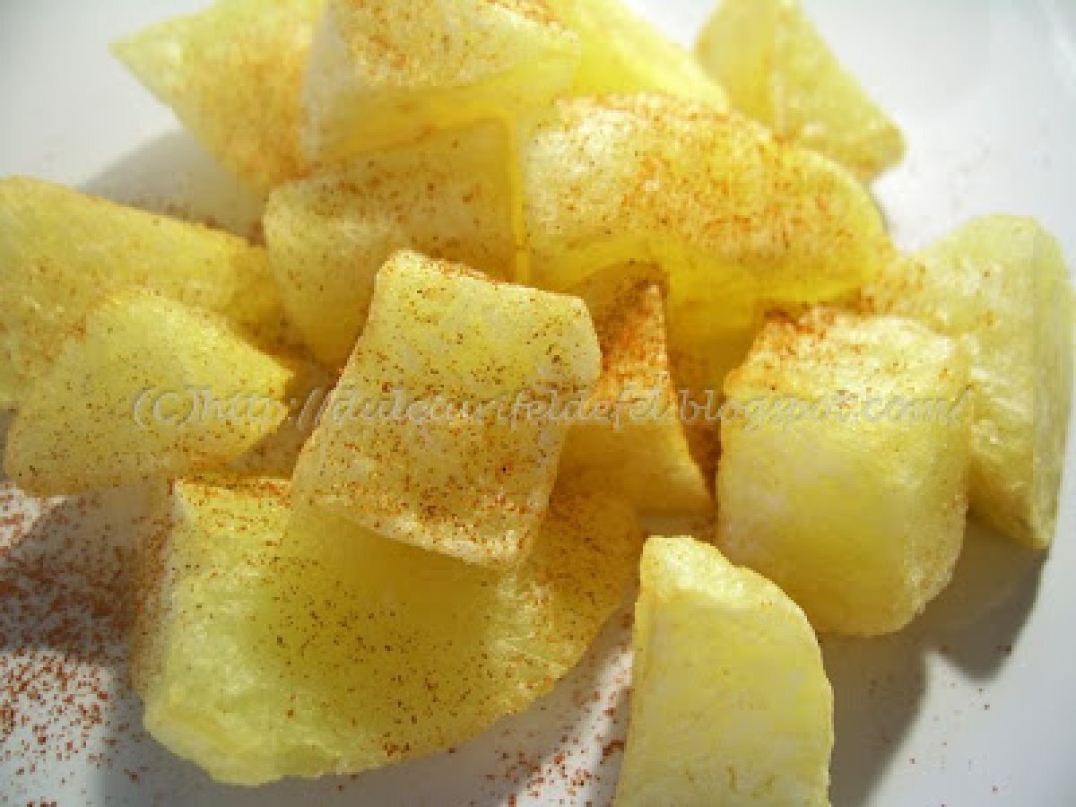 Cartofi aurii PrecedentulUrmătorul AperitivFoarte ușor20 min157 Kcal Trimite unui prieten Printează pagina Adresează o întrebare autorului Postează o poză cu rețeta gătită de tine Ingrediente 2 cartofi ulei pt prajit sare boia de ardei Cost estimat: 0.78Euros€ (0.39€/porție)