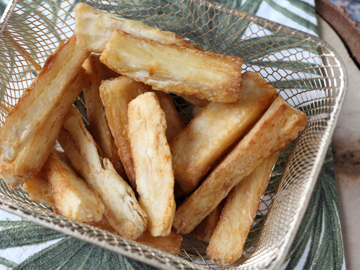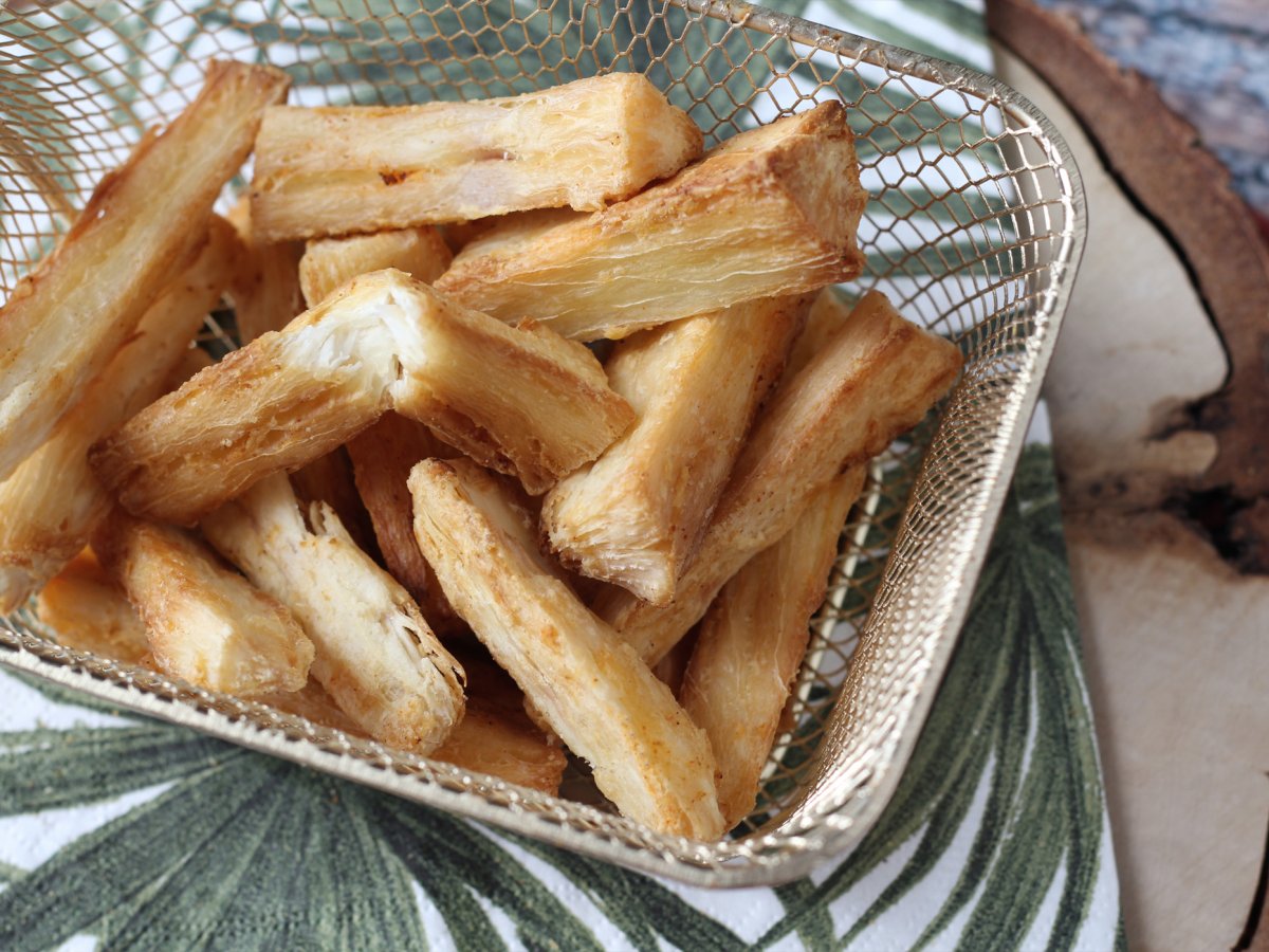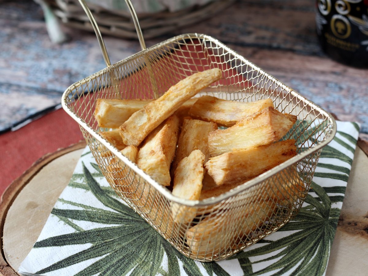 Iată un acompaniament original și gustos: Cartofi prăjiți din manioc! Acest tubercul versatil și gustos este o comoară culinară în America Latină, unde este apreciat într-o mare varietate de forme precum arepas și uneori ca desert. Dintre toate aceste variante, preferatul nostru este în mod clar preparatul prăjit, dar care de multe ori nu este cel mai sănătos... Pentru asta, nu vă panicați, ne scoatem Air fryerul pentru a prepara cartofi prăjiți ultra-crocanți, săraci în grăsimi! :-)