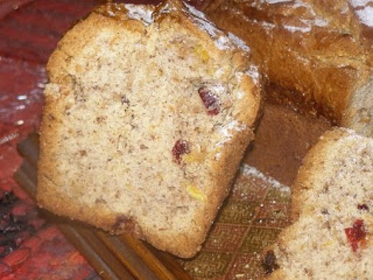 Chec cu nuca si portocale PrecedentulUrmătorul AperitivFoarte ușor50 min Trimite unui prieten Printează pagina Adresează o întrebare autorului Postează o poză cu rețeta gătită de tine Ingrediente 4 3 cani (cups) faina,(450 g) 1 1/2 cani ulei, (250 ml) sau 250 g unt 4 oua 1 1/4 cani zahar pudra (300 g ) coaja si zeama de la o portocala 1 plic praf de copt (2 lg ) 2 plicuri zahar vanilat esenta rom,vanilie 1 cana stafide sau merisor (cranberry) 150 g nuci macinate mai mare. daca aveti, 3 linguri mari de coaja de portocala confiata sau bucatele de portocala