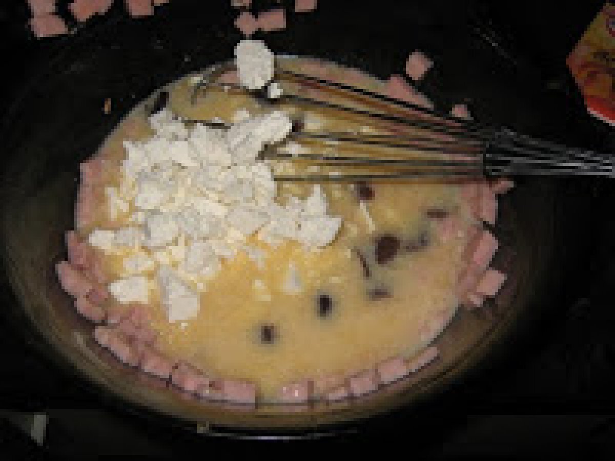 Chec cu sunca si feta PrecedentulUrmătorul AperitivFoarte ușor1 h 20 m622 Kcal Trimite unui prieten Printează pagina Adresează o întrebare autorului Postează o poză cu rețeta gătită de tine Este o reteta festiva si foarte gustoasa. Ingrediente 4 300 g sunca de porc sau de pui 3 oua 250 g faina de grau 150 ml lapte sau apa 150 g cascaval sau parmezan ras 50 g masline fara samburi 150 g feta un plic de praf de copt Cost estimat: 8.02Euros€ (2.01€/porție)