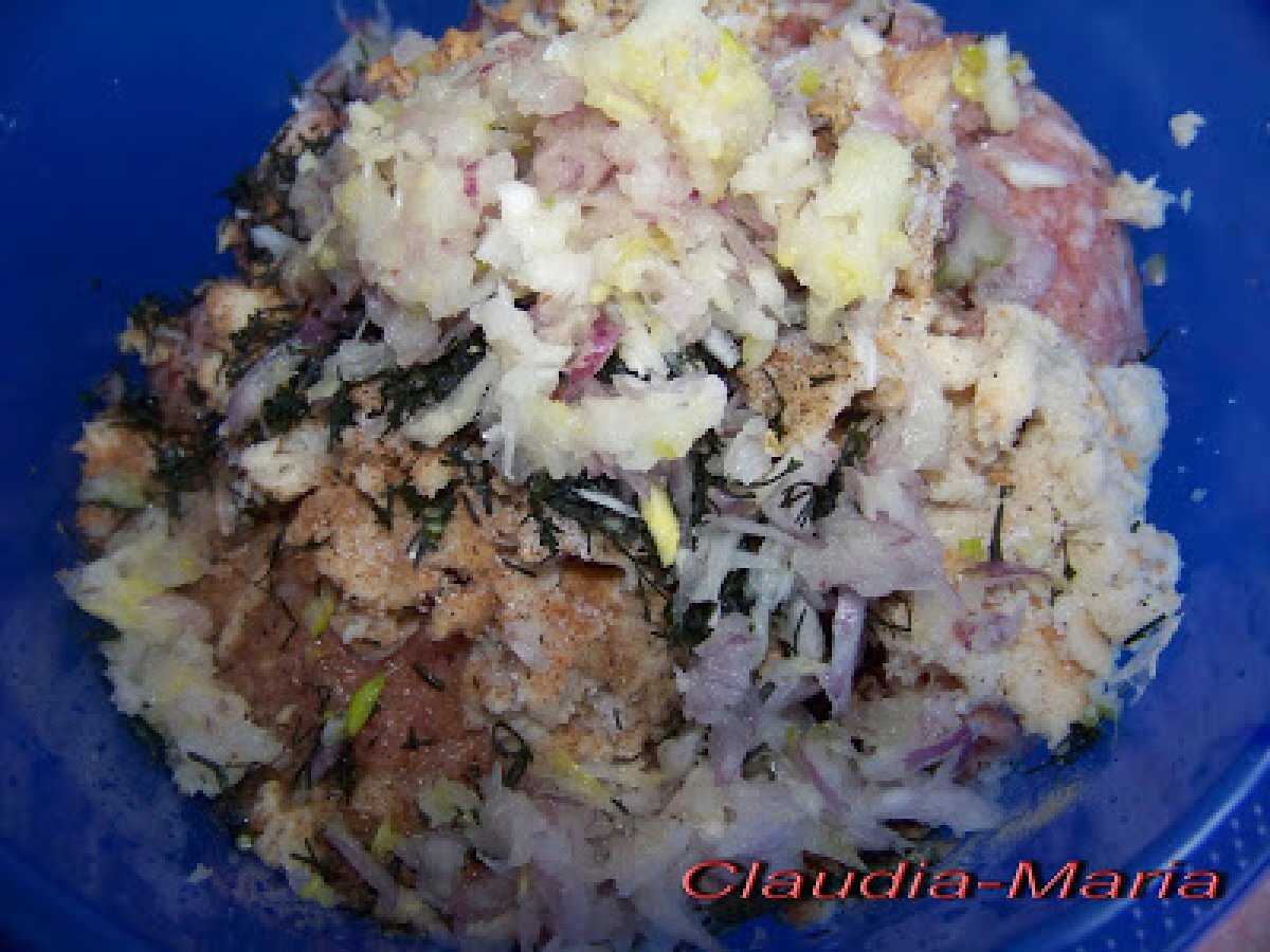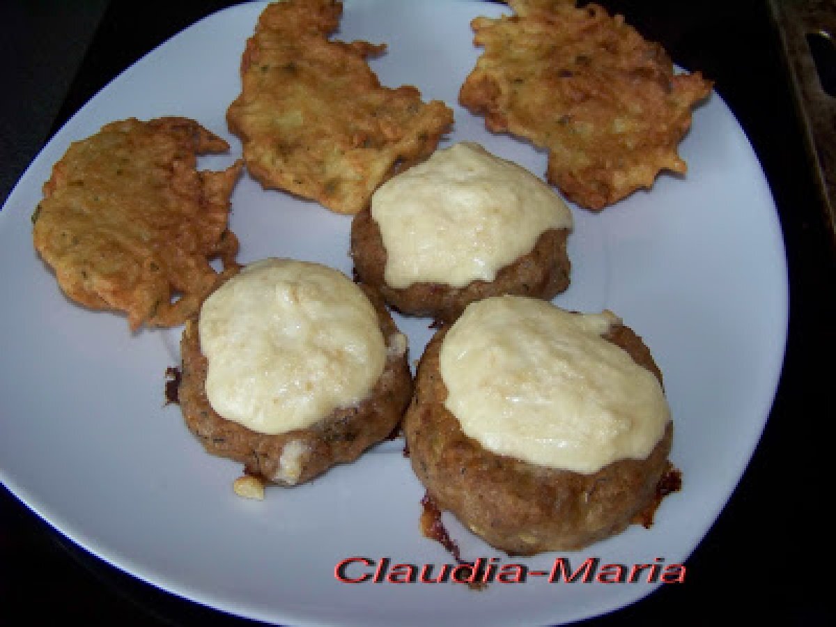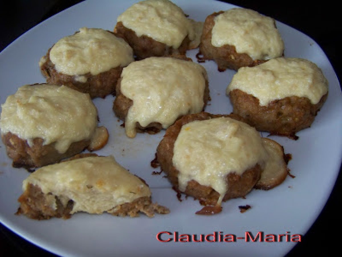 Chiftele umplute cu sos de cascaval PrecedentulUrmătorul AperitivFoarte ușor30 min Trimite unui prieten Printează pagina Adresează o întrebare autorului Postează o poză cu rețeta gătită de tine Ingrediente 4 carne macinata 1 ou paine alba muiata in apa si stoarsa bine 3 catei de usturoi o ceapa patrujel si marar condimente : sare,piper nucsoara,boia