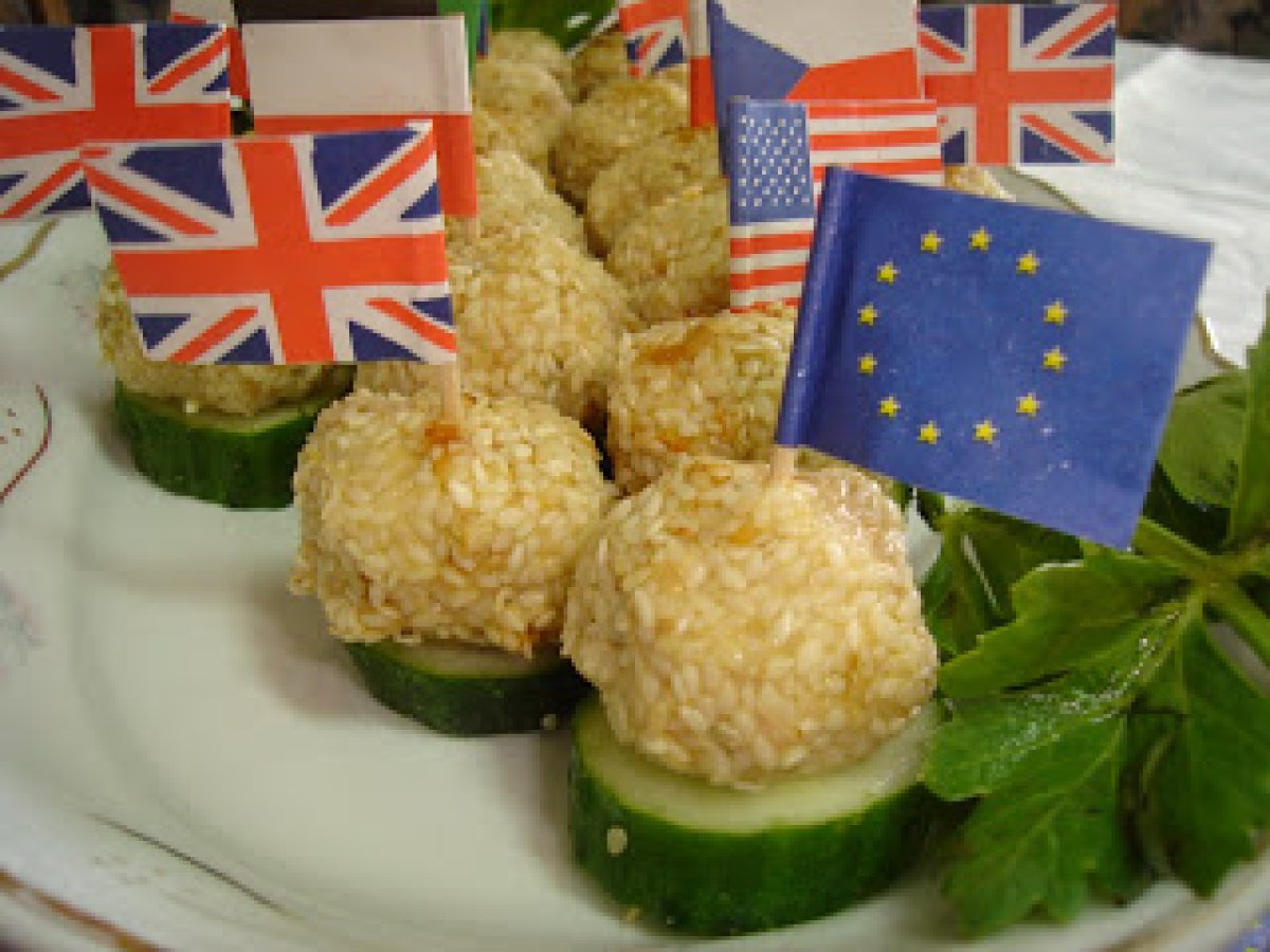 Chiftelute de curcan cu susan PrecedentulUrmătorul AperitivFoarte ușor40 min Trimite unui prieten Printează pagina Adresează o întrebare autorului Postează o poză cu rețeta gătită de tine Ingrediente 4 600 g piept de curcan, 1 ceapa, 3 catei de usturoi, 3 oua, 2 felii de paine, 25g mustar, ulei, patrunjel, sare, susan, 3 castraveti pt. decor.