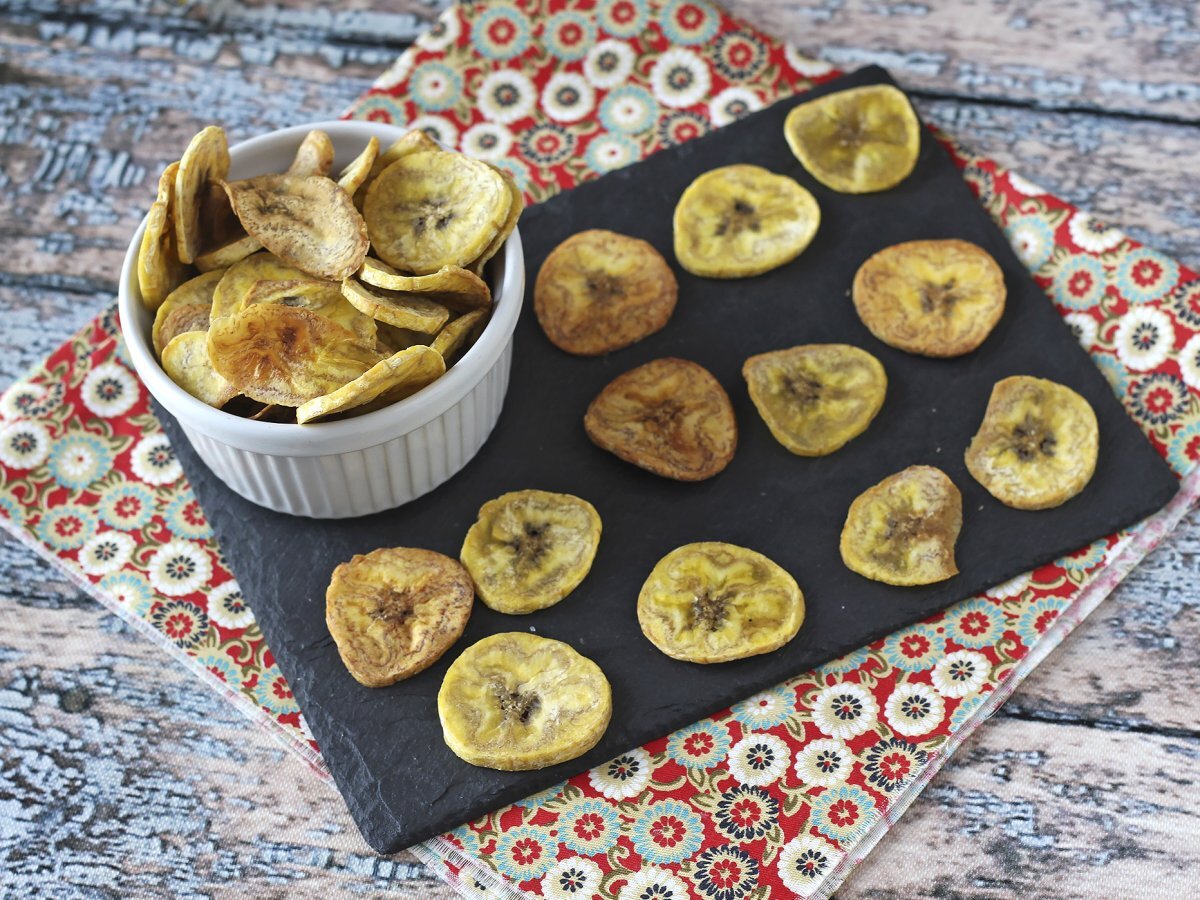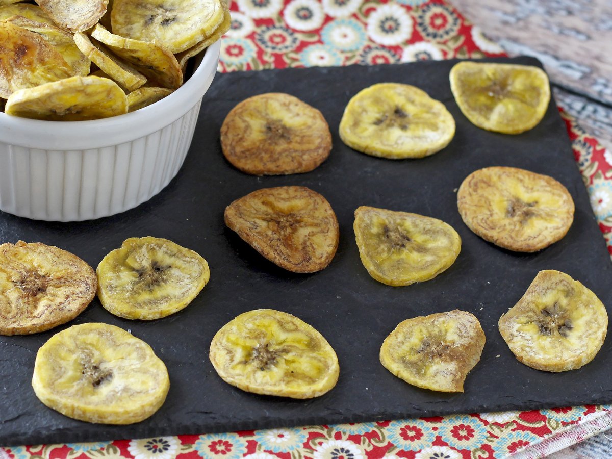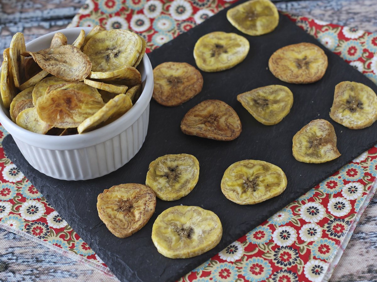 Atunci când căutăm o alternativă diferită la tradiționalele aperitive, fără a dori să investim prea mult timp în bucătărie sau să depunem prea mult efort, nu există o opțiune mai bună decât aceste cipsuri de banane coapte! Sunt originale, crocante și, în plus, mult mai sănătoase! Succesul tău este garantat! :)