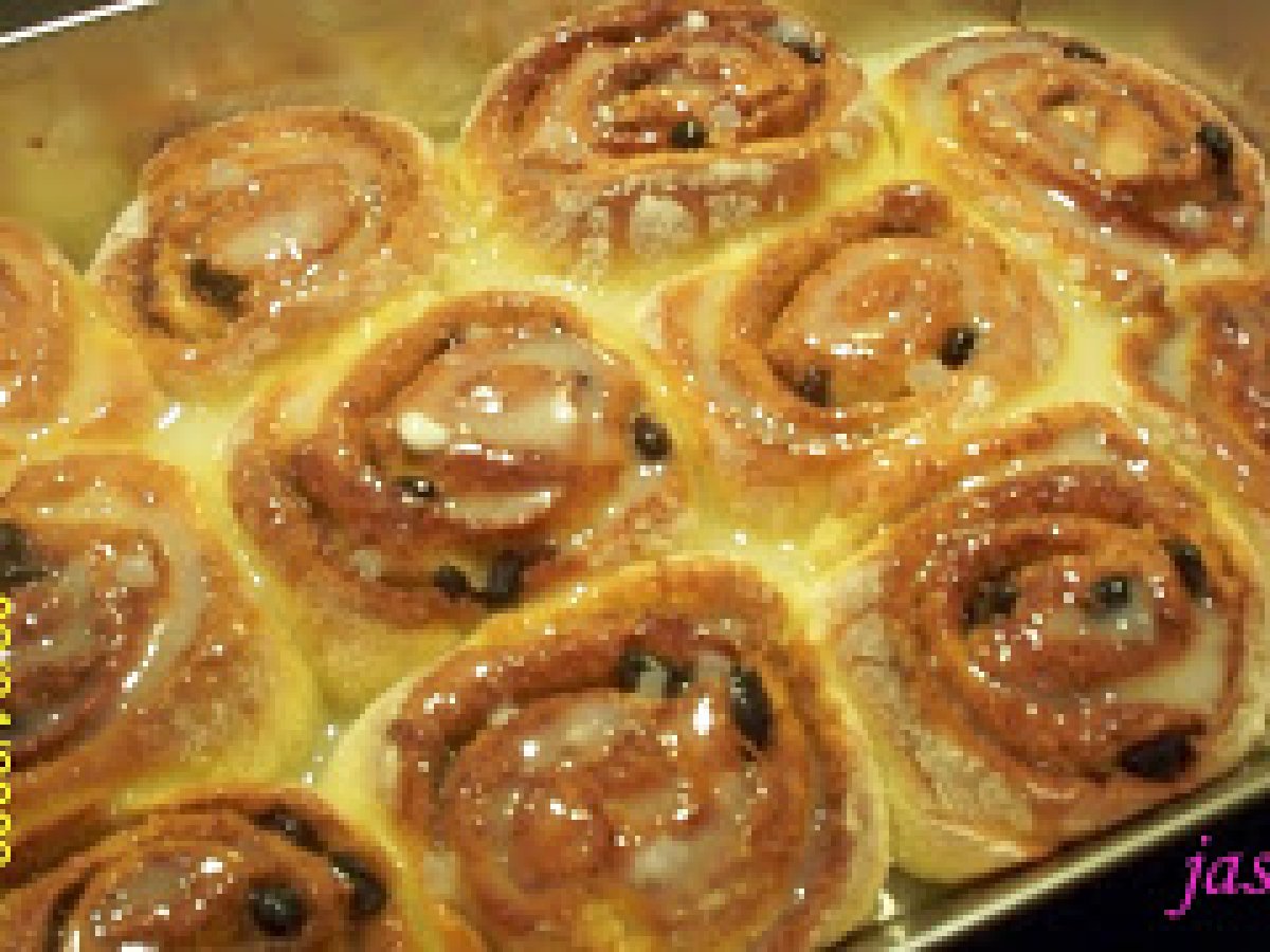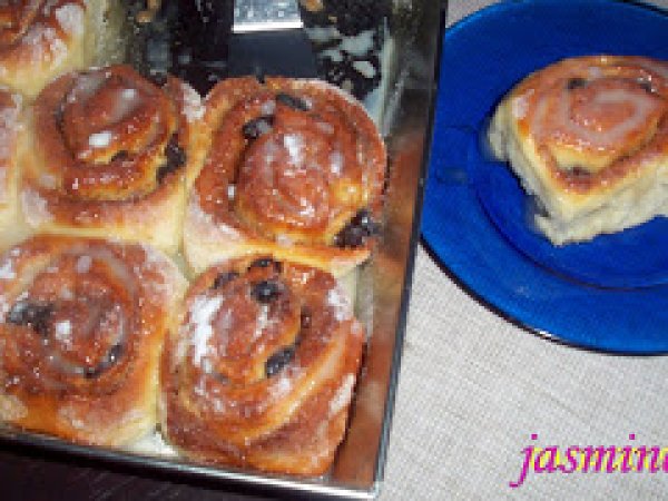 Cinnamon rolls, sau cum le zicem noi - cuiburi cu scortisoara PrecedentulUrmătorul AperitivFoarte ușor1 h 10 m Trimite unui prieten Printează pagina Adresează o întrebare autorului Postează o poză cu rețeta gătită de tine Ingrediente 4 180 ml lapte 180 ml apa 2 oua mici 45 g unt 1 l (lingurita) extract de vanilie 7 g sare 75 g zahar 560 g faina 15 g drojdie uscata Pentru umplutura: 55 g unt moale 5 g scortisoara 110 g zahar brun 40 g nuca de cocos 95 g stafide Pentru glazura: 200 g zahar pudra 30 g unt topit 3 ml extract de vanilie 35 ml lapte iaurt Cremosso de cocos Danone