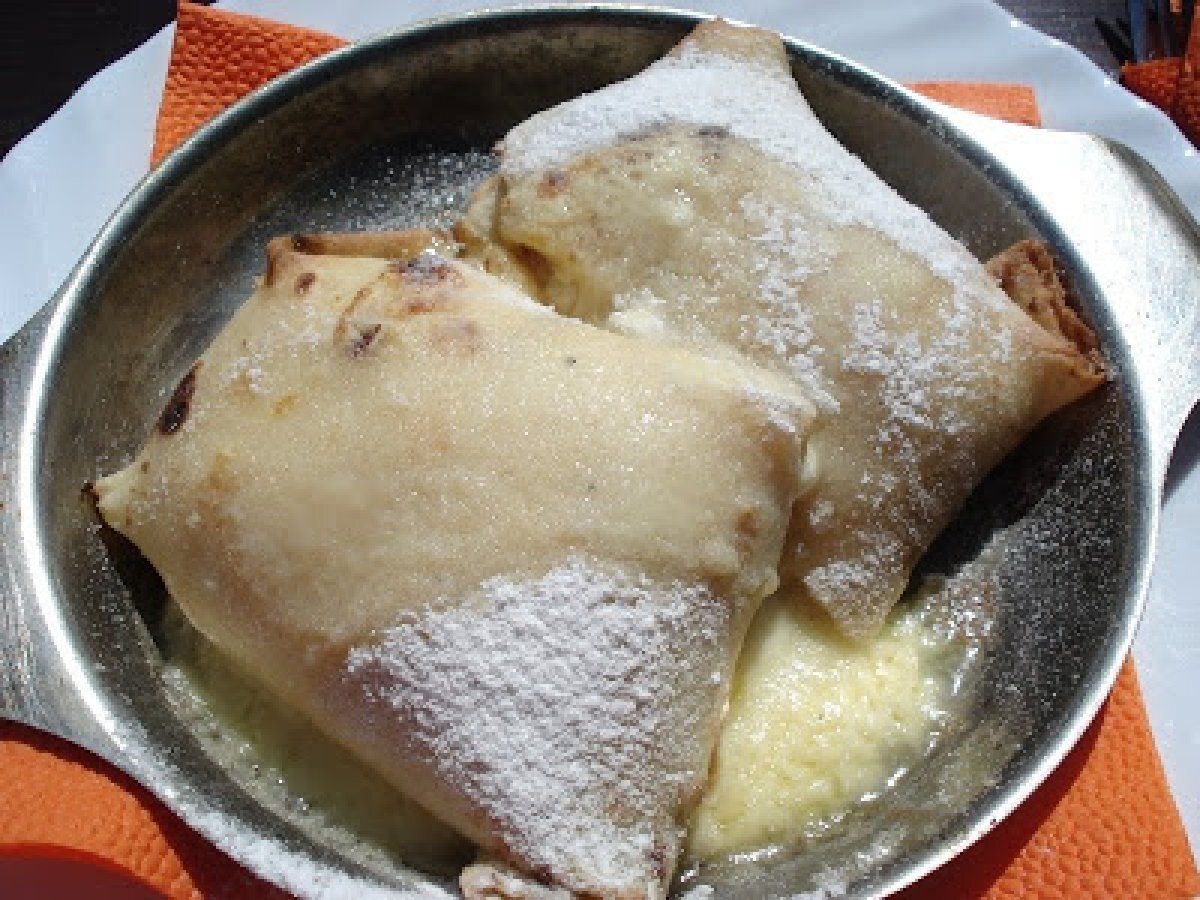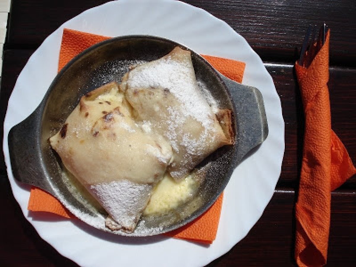 Clatite brasovene cu branza dulce si stafide PrecedentulUrmătorul AperitivFoarte ușor45 min Trimite unui prieten Printează pagina Adresează o întrebare autorului Postează o poză cu rețeta gătită de tine Ingrediente 2 aluat pentru clatite: 1 ou zahar dupa gust 300 ml lapte 1/2 de pahar apa minerala faina cat cuprinde esente (optional) pentru umplutura branza dulce de vaci putina smantana stafide esenta de rom coaja de lamaie vahar vanilat zahar