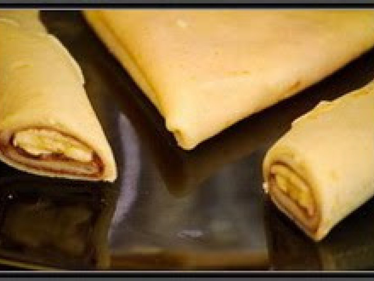 Clatite cu banane, biscuiti si ciocolata PrecedentulUrmătorul AperitivFoarte ușor40 min Trimite unui prieten Printează pagina Adresează o întrebare autorului Postează o poză cu rețeta gătită de tine Ingrediente 6 300 g faina 550 ml lapte 1 ou 2 linguri de zahar un varf de cutit de sare esenta de rom Si pentru umplutura: Nutella sau Finetti cam 7 biscuiti simpli 2 banane