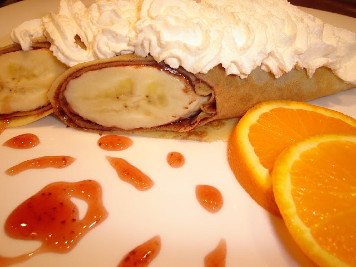 Clatite cu banane PrecedentulUrmătorul AperitivFoarte ușor45 min Trimite unui prieten Printează pagina Adresează o întrebare autorului Postează o poză cu rețeta gătită de tine Ingrediente 4 2 oua 1 cana de lapte 1 cana apa minerala 2 linguri zahar 50 ml ulei arome cca 500 g faina