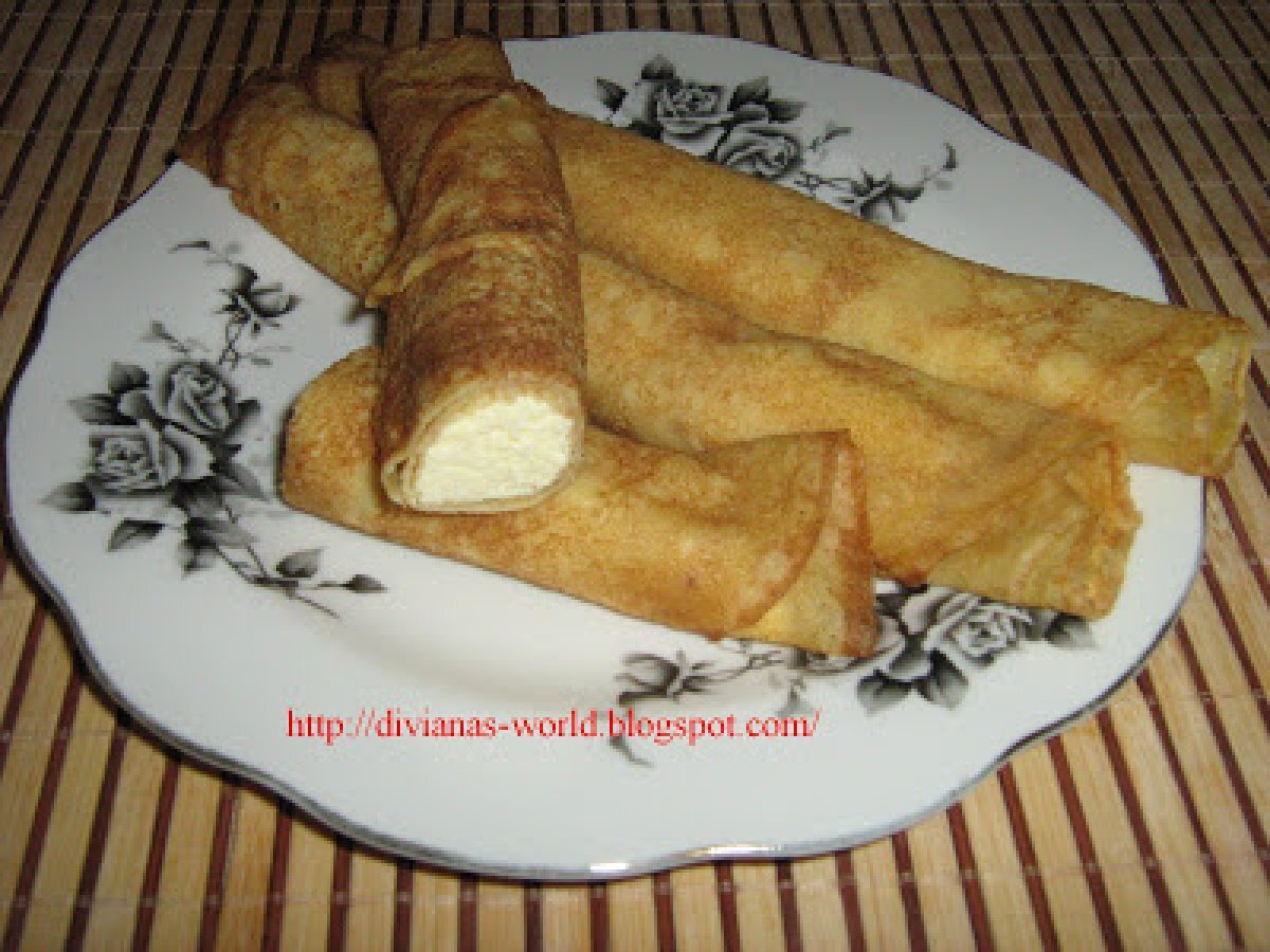 Clatite cu branza dulce PrecedentulUrmătorul AperitivFoarte ușor1 oră Trimite unui prieten Printează pagina Adresează o întrebare autorului Postează o poză cu rețeta gătită de tine Ingrediente 4 pentru foaia de clatita: 2 oua 250 g faina 500 ml apa minerala sau lapte un praf de sare 2 linguri de zahar si 50 ml ulei pentru umplutura: branza de vaci zahar vanilat zahar galbenus de ou smantana coaja rasa de lamaie