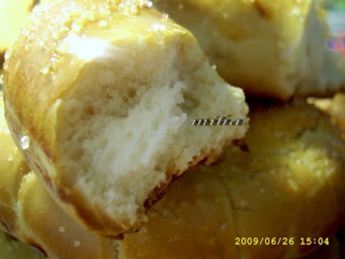 Colacei dulci PrecedentulUrmătorul AperitivFoarte ușor1 h 10 m491 Kcal Trimite unui prieten Printează pagina Adresează o întrebare autorului Postează o poză cu rețeta gătită de tine Ingrediente 4 Prima etapa: 125 ml apa clocotita 50 g zahar 25 g unt A doua etapa: 7 g drojdie uscata 1 lingurita miere 25 ml apa calduta 1 ou esenta vanilie A treia etapa: 425 g faina 1 lingurita sare Cost estimat: 1.04Euros€ (0.26€/porție)