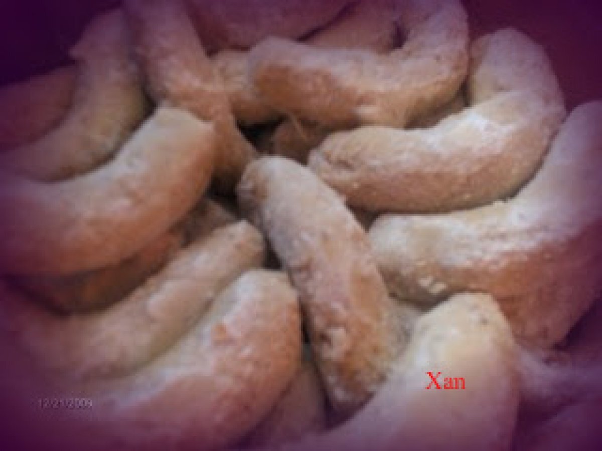 Cornulete cu nuca PrecedentulUrmătorul AperitivFoarte ușor42 min655 Kcal Trimite unui prieten Printează pagina Adresează o întrebare autorului Postează o poză cu rețeta gătită de tine Ingrediente 4 1 pachet margarina 100 g zahar 150 g nuca macinata 300 g faina un praf sare. Cost estimat: 3.39Euros€ (0.85€/porție)