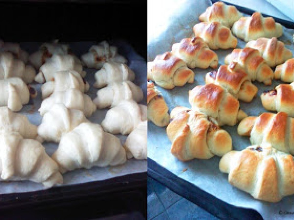 Cornuri cu gem PrecedentulUrmătorul AperitivFoarte ușor50 min Trimite unui prieten Printează pagina Adresează o întrebare autorului Postează o poză cu rețeta gătită de tine Ingrediente 4 1 cub de 25 g drojdie 1 lingurita rasa de sare 550 g faina 3 linguri miere de albine 40 g unt topit dar nu fierbinte 250 ml lapte caldut 1 ou