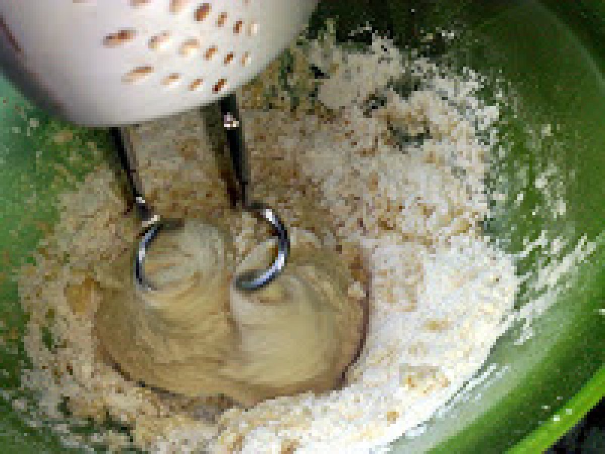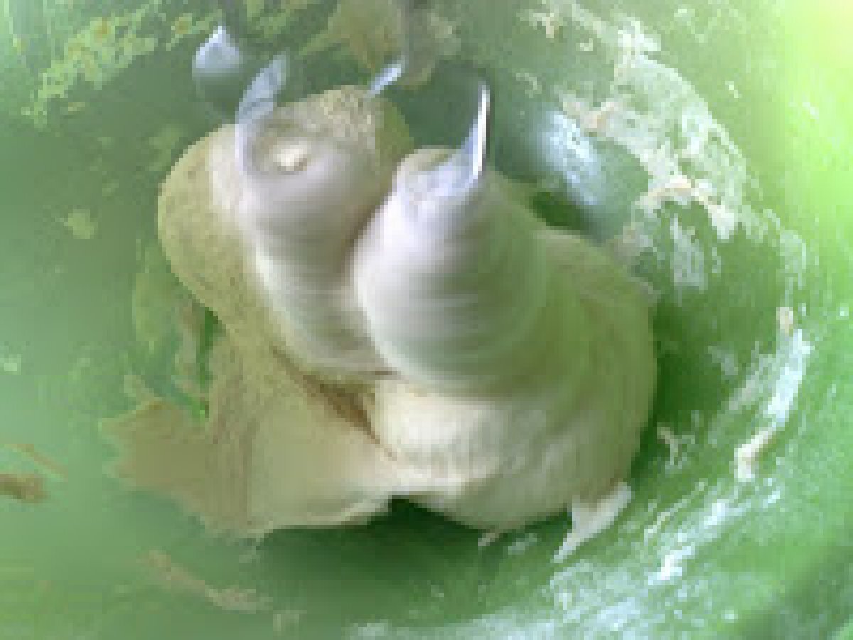 - Se pun toate ingrediente intr-un bol si se framanta cu mana sau cu mixerul. intotdeauna folosesc mixerul cu paletele acelea rasucite .Se framanta pana devine un aluat elastic si nelipicios.