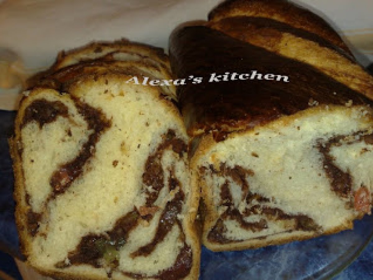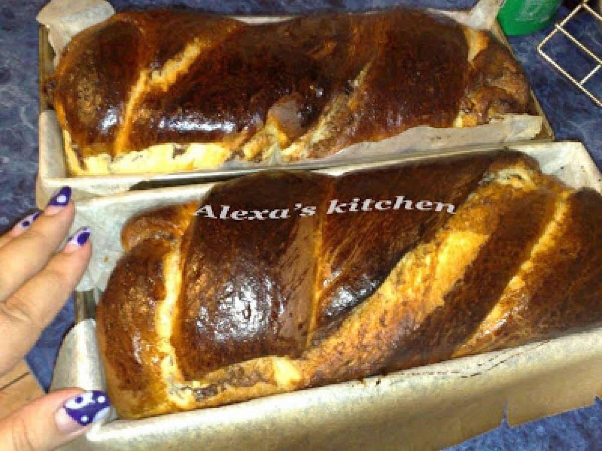 Cozonac pufos PrecedentulUrmătorul AperitivFoarte ușor1 oră Trimite unui prieten Printează pagina Adresează o întrebare autorului Postează o poză cu rețeta gătită de tine Ingrediente 4 50 drojdie proaspata 400 ml lapte cald 180 g zahar 2 oua mari 2 galbenusuri 800 g faina 1 lingurita de sare 200 g unt topit Pt. umplutura 4 albusuri 100 g nuci macinate coaja de lamaie 2 linguri de cacao 10 linguri de zahar rahatstafide