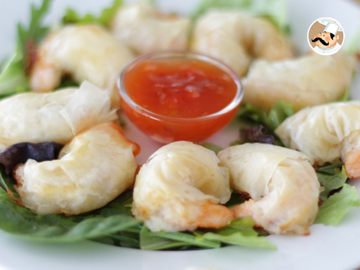Aveti pofta de fructe de mare? Ce ati spune de un aperitiv crocant cu creveti? Luati niste foi de placinta si sa ne apucam de treaba.