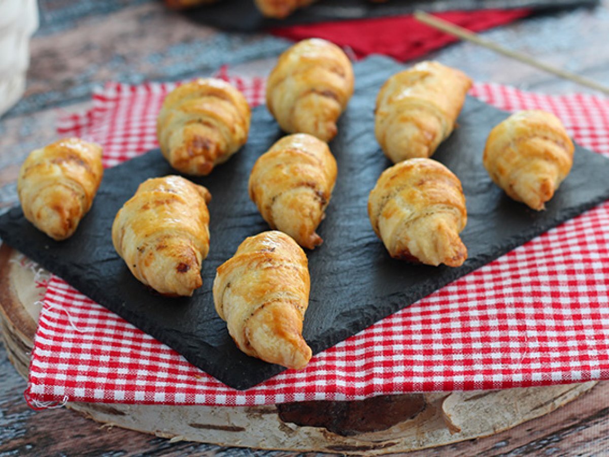 Pentru un aperitiv usor de facut si crocant, opteaza pentru mini croissante! Noi le-am umplut cu crema de branza si sunca presata. Datorita explicatiilor noastre scrise si fotografiilor, veti reproduce cu usurinta plierea acestora.
