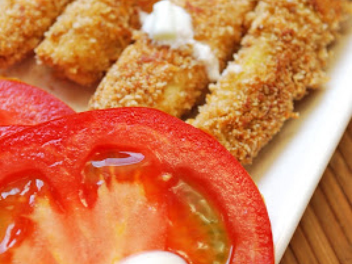 Dovlecei crocanti la cuptor! PrecedentulUrmătorul AperitivFoarte ușor1 oră Trimite unui prieten Printează pagina Adresează o întrebare autorului Postează o poză cu rețeta gătită de tine Ingrediente 4 1kg de dovlecel 250 ml iaurt 50 ml ulei pesmet 50-70 g telemea mai uscata sare