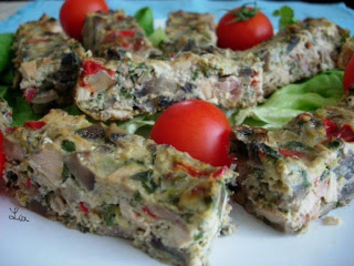 Drob din piept de pui cu ciuperci PrecedentulUrmătorul AperitivFoarte ușor50 min Trimite unui prieten Printează pagina Adresează o întrebare autorului Postează o poză cu rețeta gătită de tine Ingrediente 8 30 g piept de pui fiert 1 le gatura Frunze patrunjel Un fir de praz 3 fire ceapa verde 1 ardei kapia 500g ciuperci 4 oua 50g ulei Sare piper