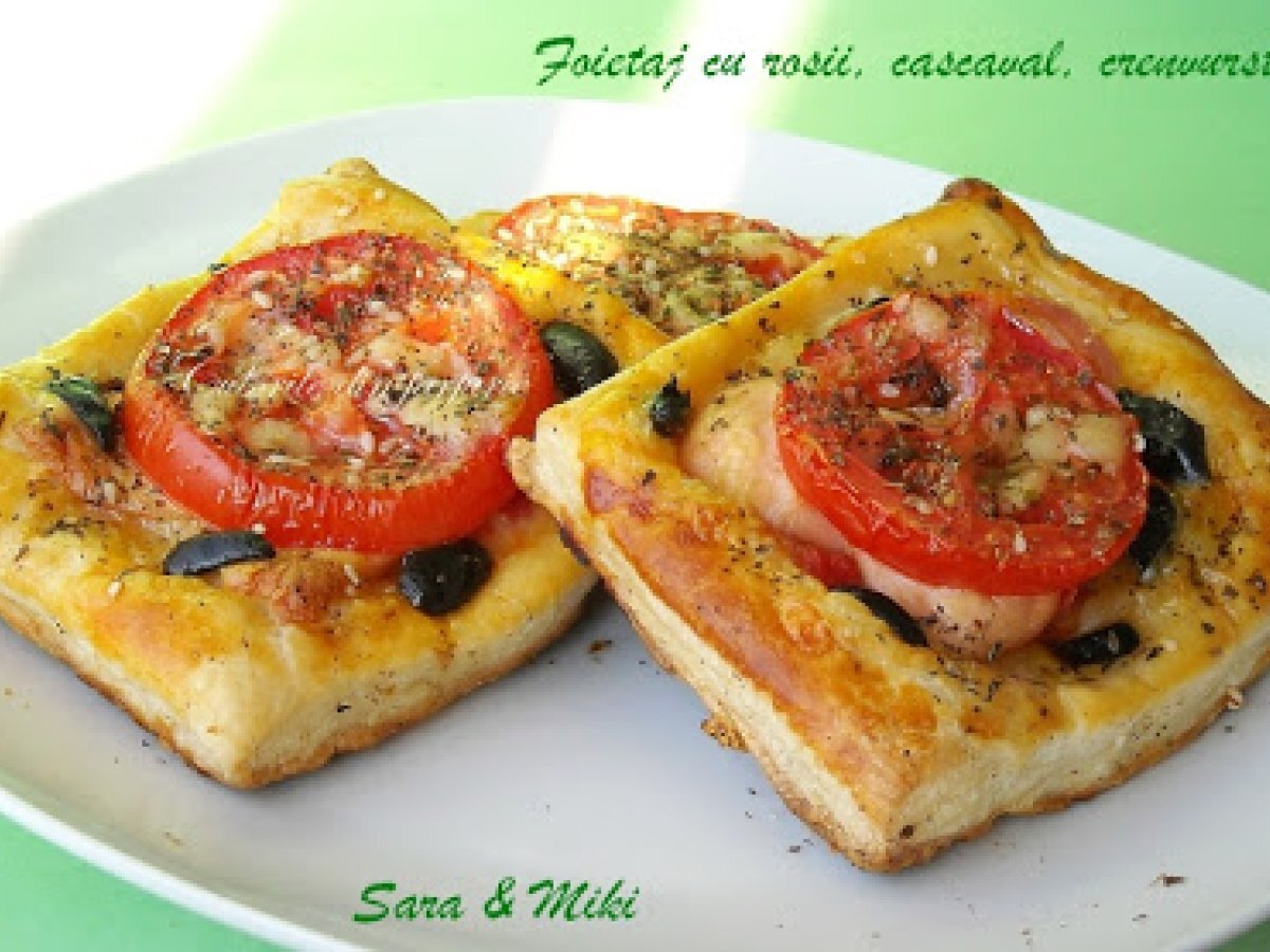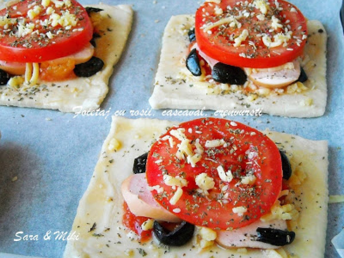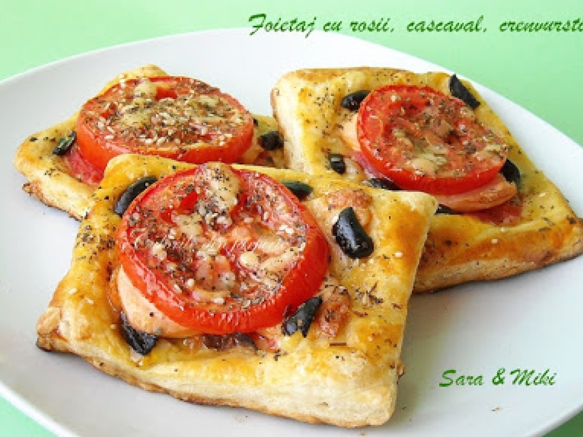 Foietaj cu rosii, cremvursti, cascaval PrecedentulUrmătorul AperitivFoarte ușor35 min Trimite unui prieten Printează pagina Adresează o întrebare autorului Postează o poză cu rețeta gătită de tine Ingrediente 4 400 g aluat fraged 3 rosii 50 g de masline carnati 50 g parmesan pasta de rosii 1 lingurirta mutar 1 ou busuioc rozmarin ulei de masline oet balsamic sare piper