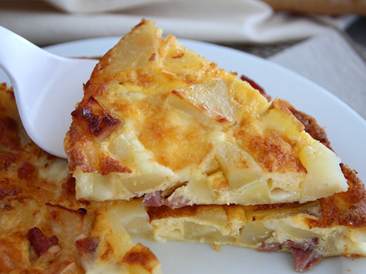 Aceasta frittata va fi perfecta pentru reutilizarea branzei ramase. Adaugati cartofi, feliile de branza ramase, prosciutto si oua! O reteta super usoara ce se poate servi ca aperitiv sau ca un fel de mancare principal alaturi de o salata buna :-)