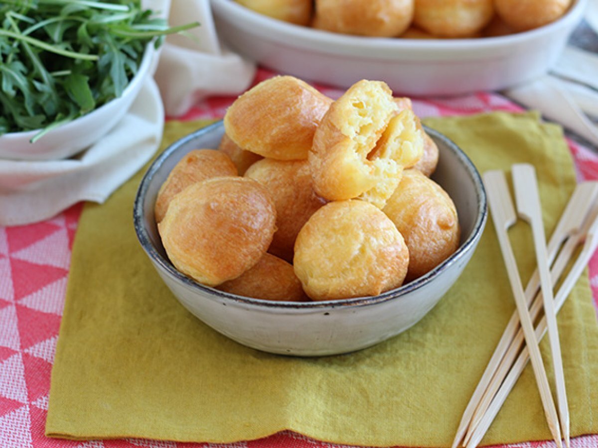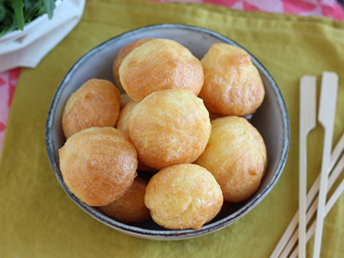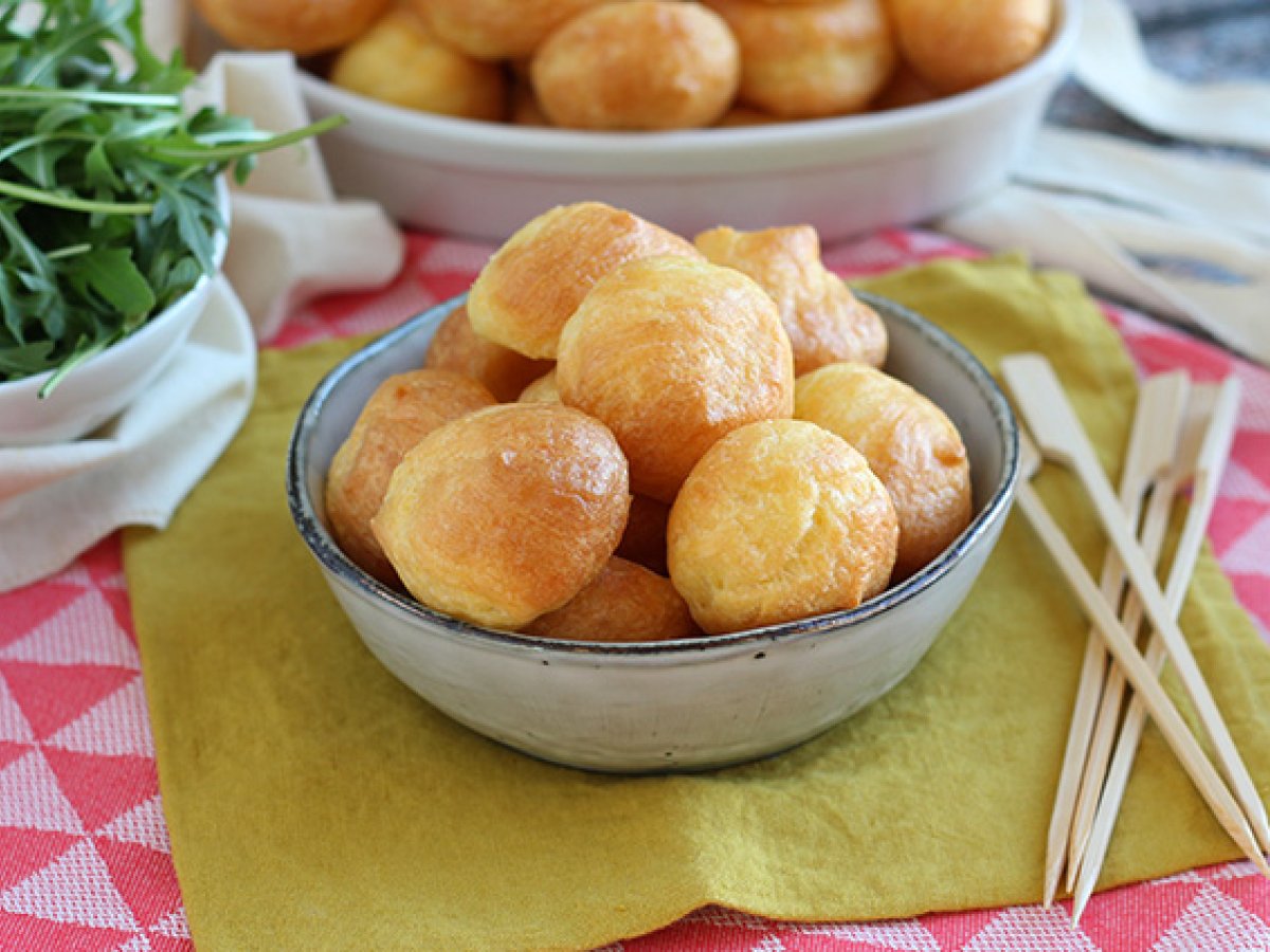Folosindu-va de un posh, puneti bile mici de aluat pe o foaie de copt si coaceti timp de 25 de minute la 180° C. La sfarsitul gatitului, inchideti focul si deschideti usa cuptorului la jumatate. Asteptati zece minute inainte de a scoate gogosele.