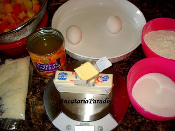Hawaii cake (prajitura hawaii) PrecedentulUrmătorul AperitivFoarte ușor1 h 25 m Trimite unui prieten Printează pagina Adresează o întrebare autorului Postează o poză cu rețeta gătită de tine Ingrediente 4 150 g unt 150 g zahar un praf de sare 2 oua 250 g faina 25 g nuca de cocos(Kokosraspel) 2 lingurite praf de copt 4 linguri suc de lamiie putin unt ptr. unsul formei si putin gris ptr. tapetat forma. Glazura: 250 g zahar praf sucul din conserva de fructe.