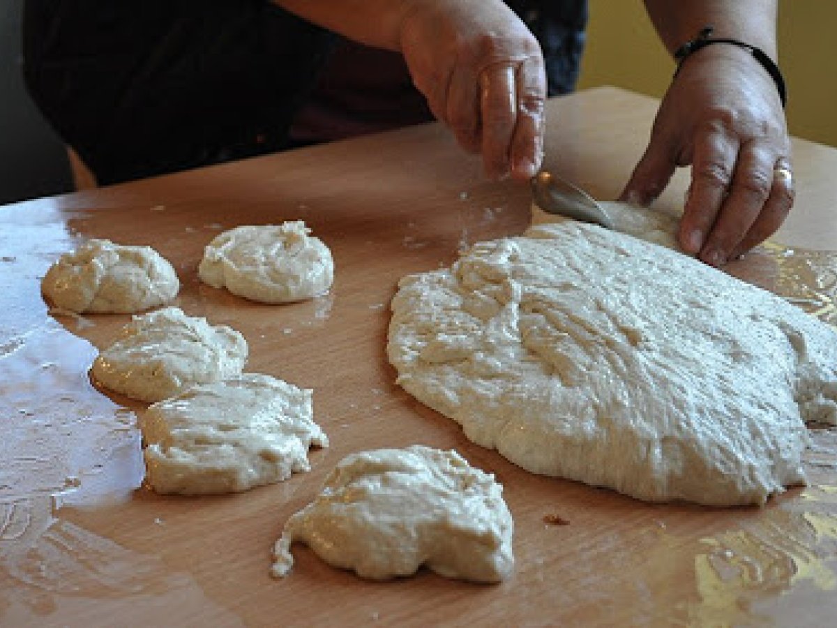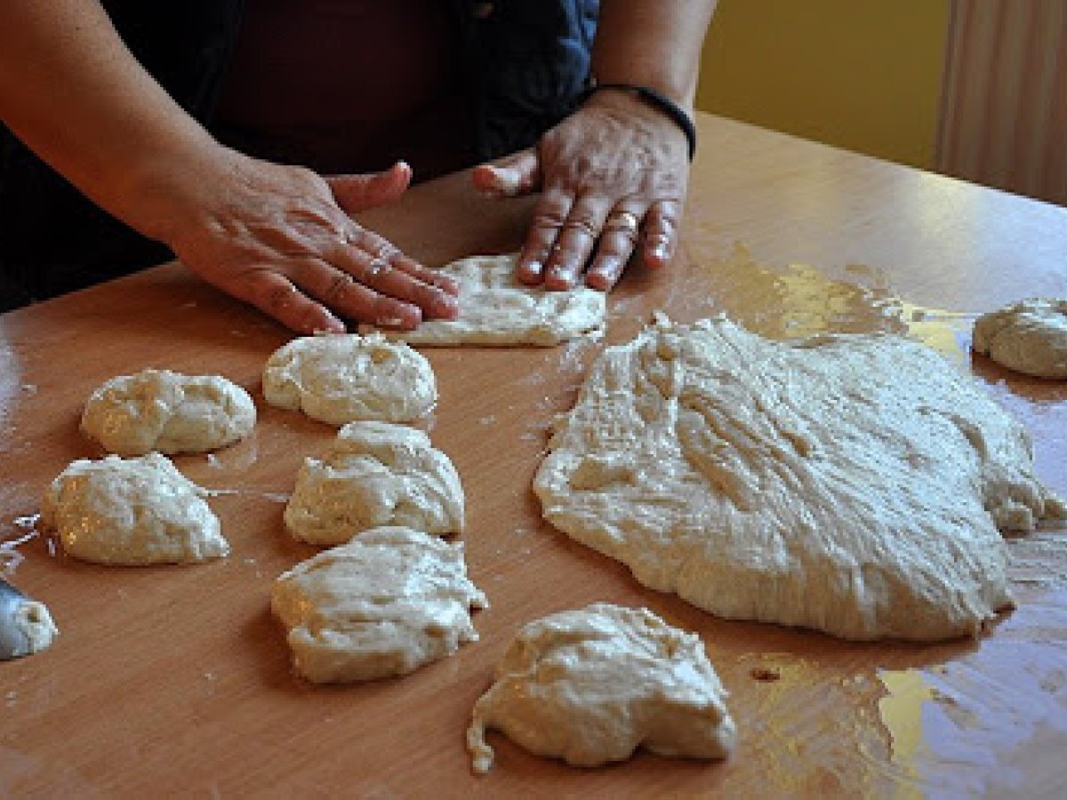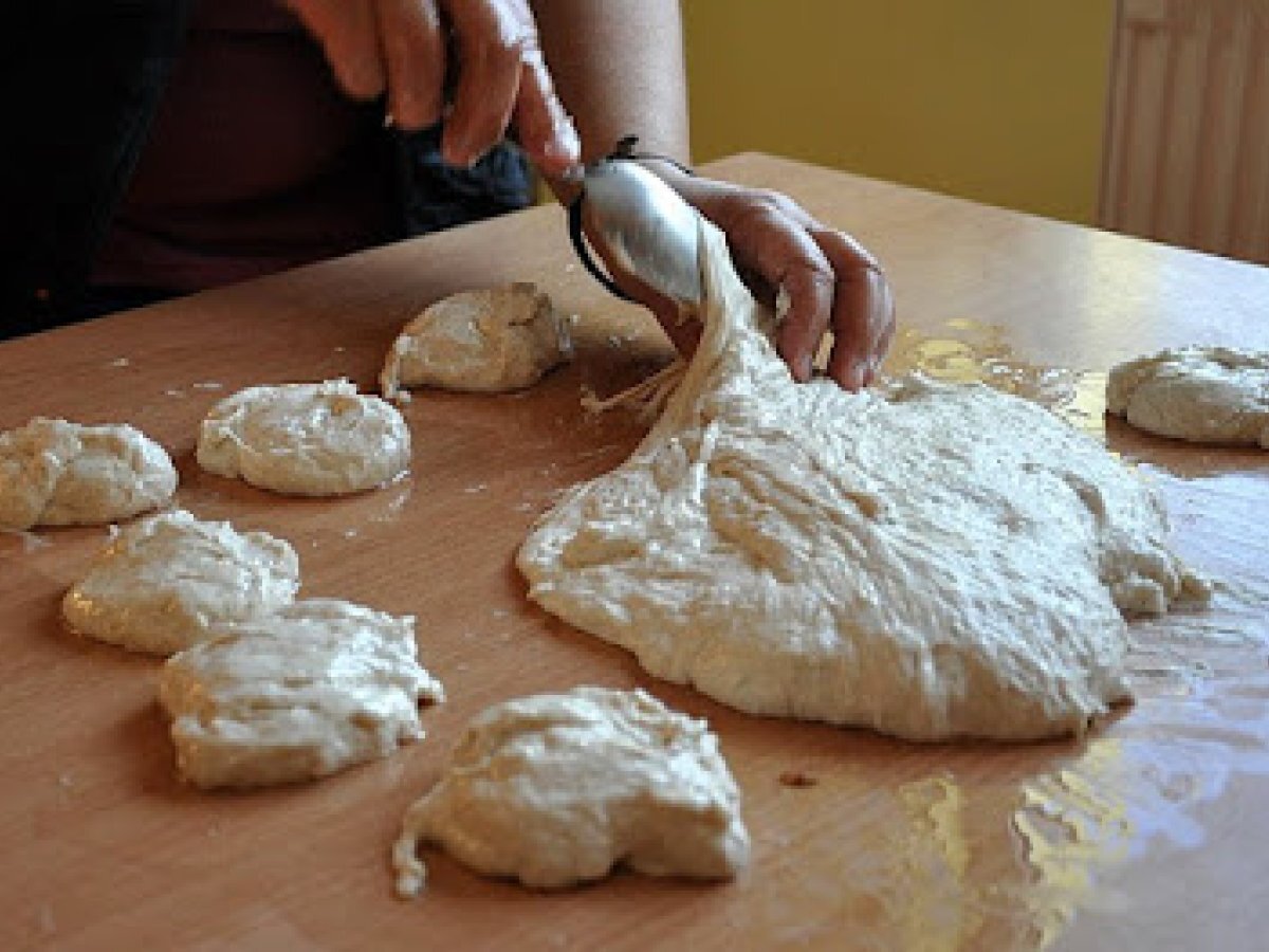 Se lasa la dospit intr-un loc calduros si lipsit de curenti de aer, pana cand arata cam asa. - Ca sa-l putem manevra ne ungem mainile cu ulei si il desprindem cu grija de pe margini.