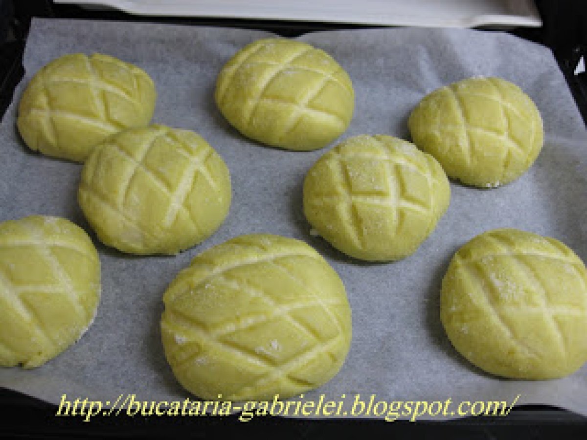 Melon bread PrecedentulUrmătorul AperitivFoarte ușor1 oră489 Kcal Trimite unui prieten Printează pagina Adresează o întrebare autorului Postează o poză cu rețeta gătită de tine Ingrediente 4 200 g faina 3 g sare 20 g zahar 4 g drojdie 100 ml apa calduta 20 g ou 20 g unt Aluat de fursec: 40 g ou 40 g zahar 40 g unt 1/2 lamaie coaja rasa esenta de lamaie(orice alta esenta ok) 120 g faina inferioara 2 g praf de copt Cost estimat: 1.84Euros€ (0.46€/porție)