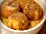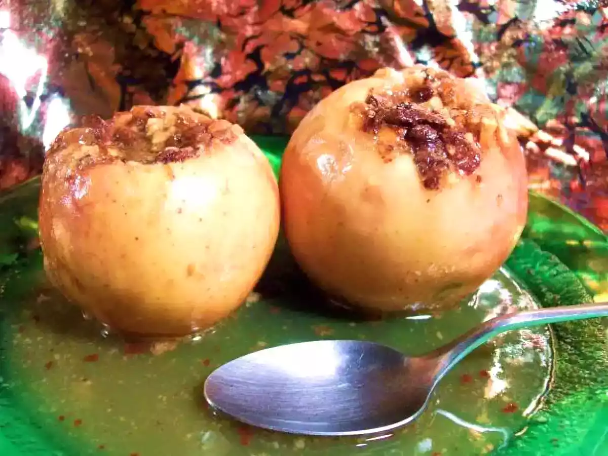 Mere coapte la cuptor cu ciocolata AperitivFoarte ușor1 h 30 m Trimite unui prieten Printează pagina Adresează o întrebare autorului Postează o poză cu rețeta gătită de tine Ingrediente 4 4 mere 2 lingurite zahar 100 ml suc de mere 200 g fulgi ciocolata 100 g nuci macinate 50 g unt.