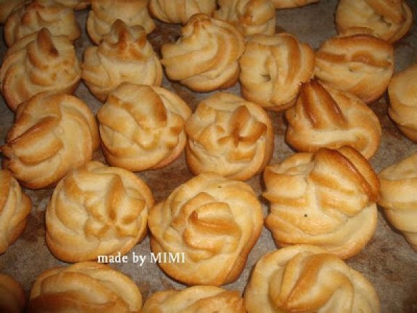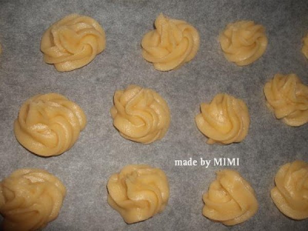 Se pune aluatul in sprit , se pune hartie de copt pe tava de aragaz si se spriteaza gogoselele de marimea dorita. vrut mici. - Le bagam imediat la cuptorul incins dinainte la foc mare la inceput si cind incepe sa se rumeneasca la foc mijlociu(deci nu mic-diferenta mare de temp. le pleosteste)cind se usuca bine le scoatem.
