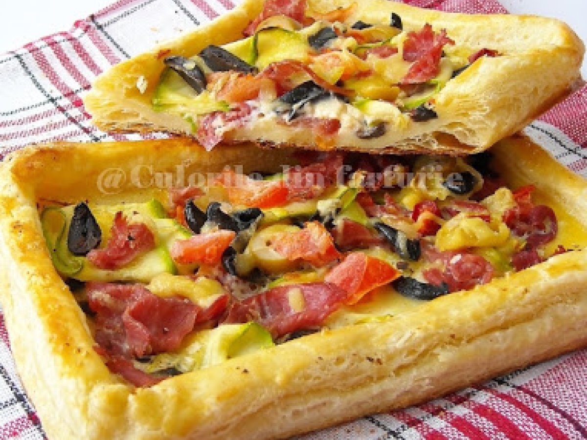 Mini-pizza cu foietaj PrecedentulUrmătorul AperitivFoarte ușor35 min Trimite unui prieten Printează pagina Adresează o întrebare autorului Postează o poză cu rețeta gătită de tine Ingrediente 4 400 g aluat fraged prosciutto 1 dovlecel 1 rosie 50 g de masline negre si verzi 50 g cascaval ras pasta de rosii 1 lingurirta mutar 1 ou busuioc rozmarin ulei de masline sare piper oet balsamic