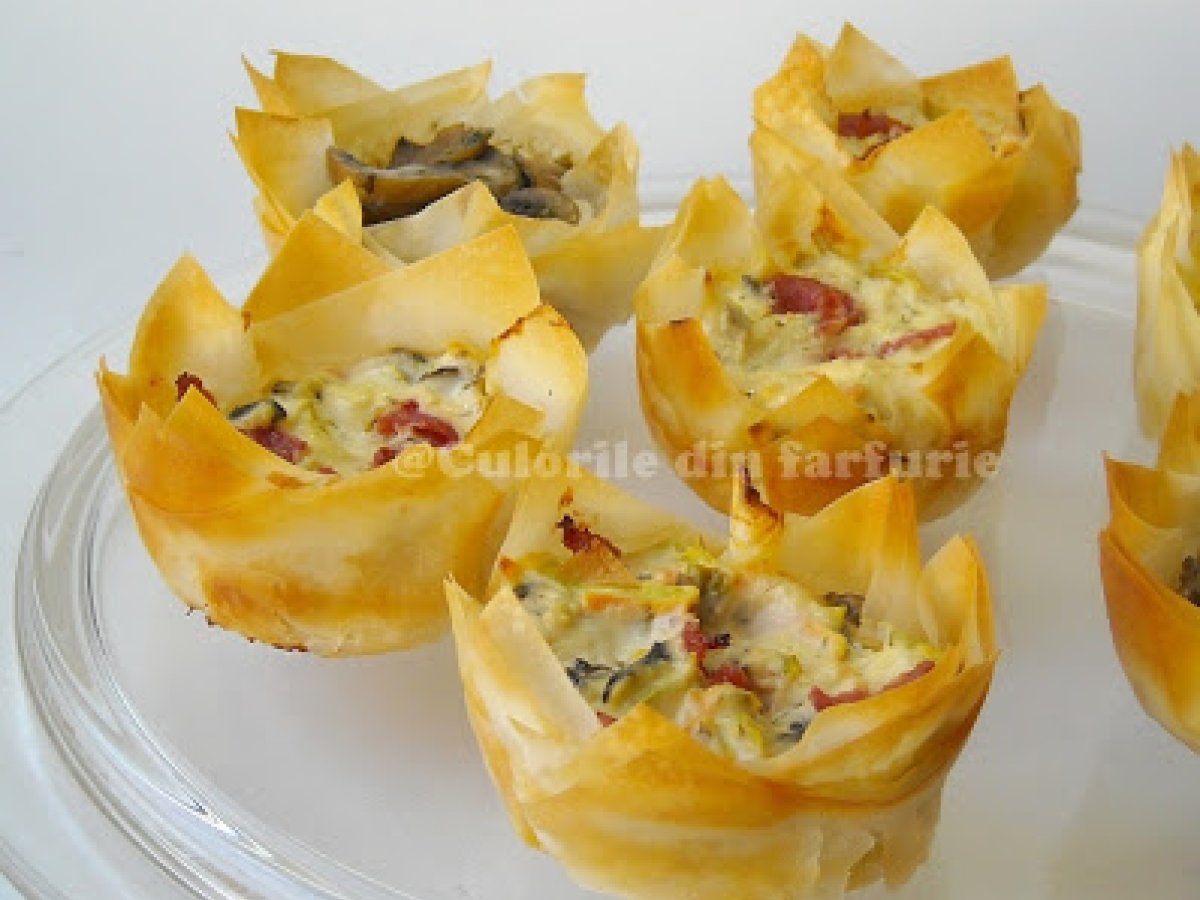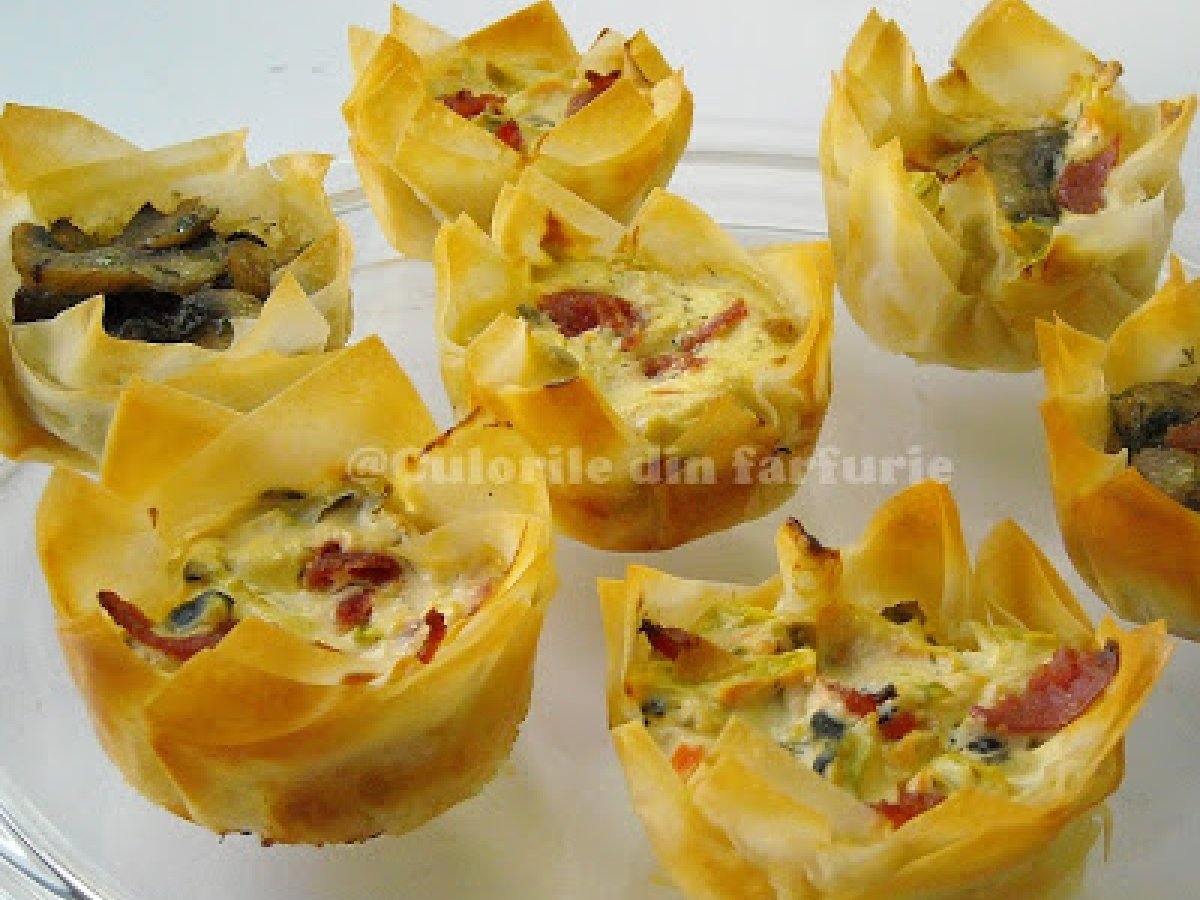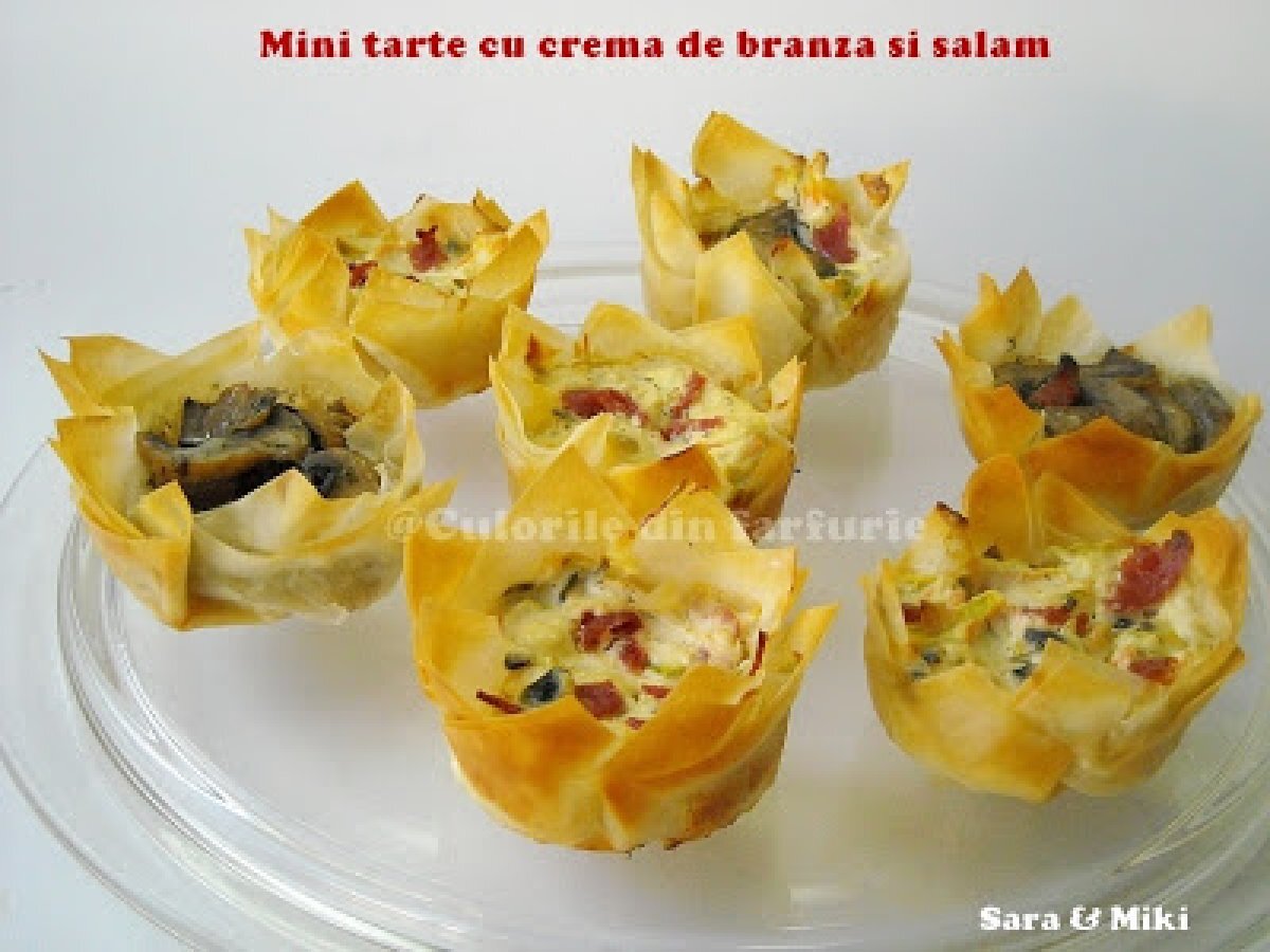 Mini-tarte cu crema de branza si salam PrecedentulUrmătorul AperitivFoarte ușor45 min Trimite unui prieten Printează pagina Adresează o întrebare autorului Postează o poză cu rețeta gătită de tine Ingrediente 6 1 pachet foi de placinta 1 pachet de crema de branza 2 ou 3-4 linguri smantana 1/2 praz 1/2 ardei rosu 1 rosie salam uscat verdeata ulei de masline sare piper