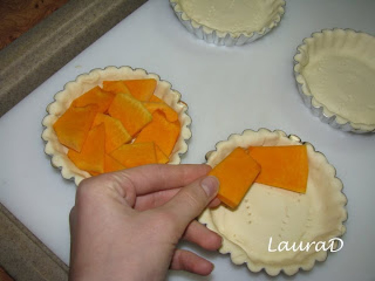 Mini-tarte pufoase cu dovleac si branza feta votează acum PrecedentulUrmătorul AperitivFoarte ușor50 min Trimite unui prieten Printează pagina Adresează o întrebare autorului Postează o poză cu rețeta gătită de tine Ingrediente 4 200 g aluat foietaj 250 g dovleac, curatat si taiat in felii subtiri 100 g branza feta