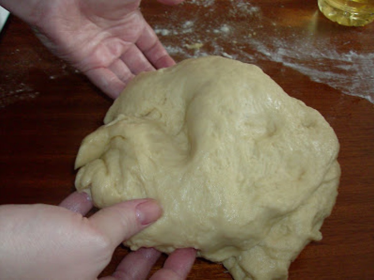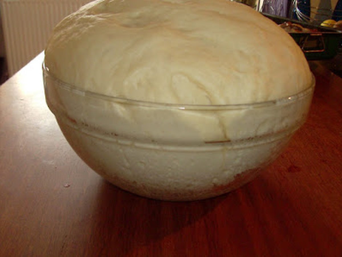 Se adauga cate 1 lingura de ulei si se farmanta pana intra tot in coca. Se continua pana ce tot uleiul a fost folosit. Framantatul a durat cam 40 minute. - Mai ceva ca atunci cand tragi la fiare, credeti-ma. Tot respectul pentru cele care fac cozonaci de Paste si de Craciun! facut o bila din aluat si pus intr-un castron mare. Lasat la crescut pana ce coca si-a dublat volumul.