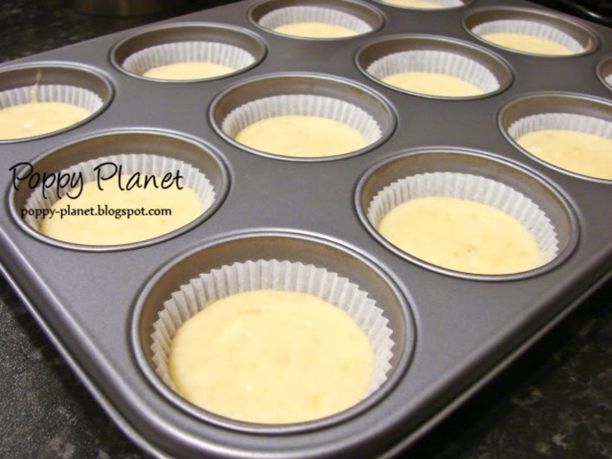 Muffins cu banane, ciocolata alba si frosting de branza PrecedentulUrmătorul AperitivFoarte ușor40 min Trimite unui prieten Printează pagina Adresează o întrebare autorului Postează o poză cu rețeta gătită de tine Ingrediente 4 pentru muffins: 2 oua 1 banana 150 g zahar 150 g unt topit 125 g faina 1 lingurita bicarbonat 1 lingurita praf de copt 50 g ciocolata alba pentru frosting: 100 g crema de branza Philadelphia 200 g zahar pudra 25 g unt topit
