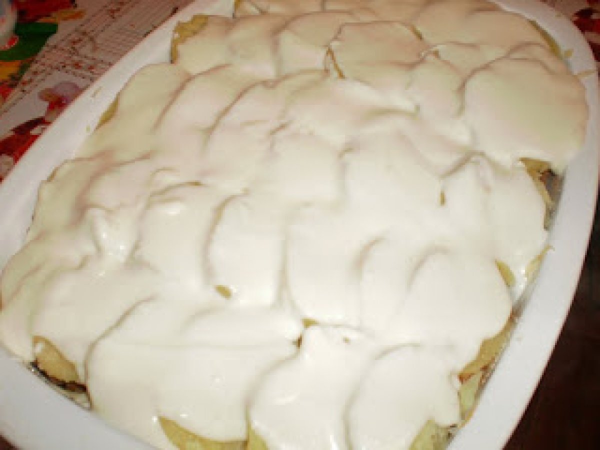 Musaca de cartofi PrecedentulUrmătorul AperitivFoarte ușor1 oră Trimite unui prieten Printează pagina Adresează o întrebare autorului Postează o poză cu rețeta gătită de tine Ingrediente 6 cartofi 1,5 kg carne tocata (porc + vita) 750 g ceapa 2 buc rosii in bulion o cutie patrunjel verde piper sare oua 2 buc ulei Sos alb unt 50 g smantana 200 g lapte 100 ml cascaval 150 g
