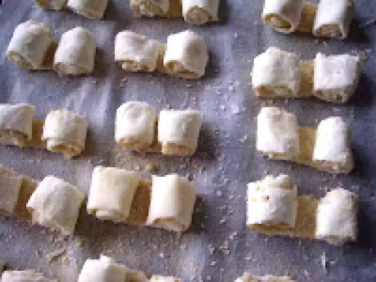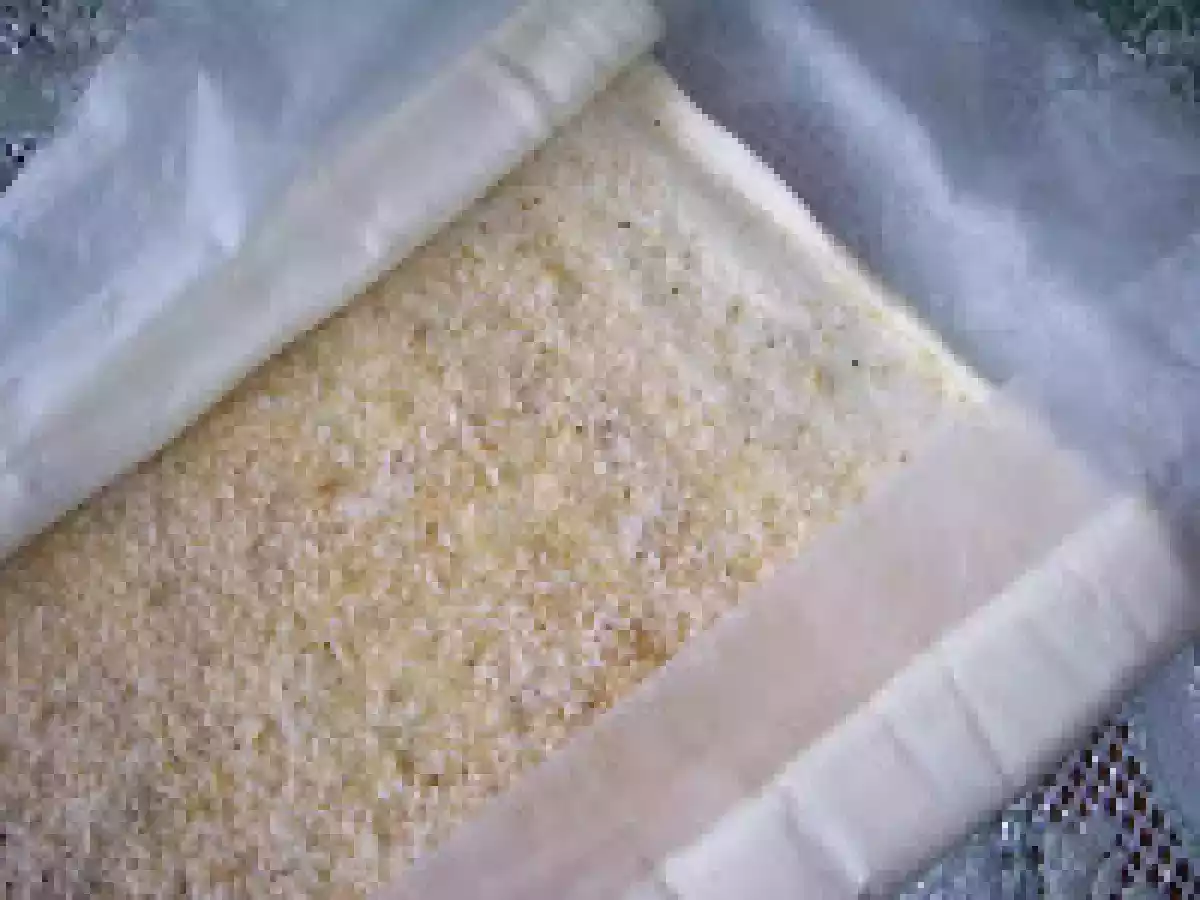 Ochelari din foetaj PrecedentulUrmătorul AperitivFoarte ușor40 min Trimite unui prieten Printează pagina Adresează o întrebare autorului Postează o poză cu rețeta gătită de tine Ingrediente 4 un pachet foetaj/aluat frantuzesc zahar de trestie sau normal miez de nuca macinat si nuca de cocos