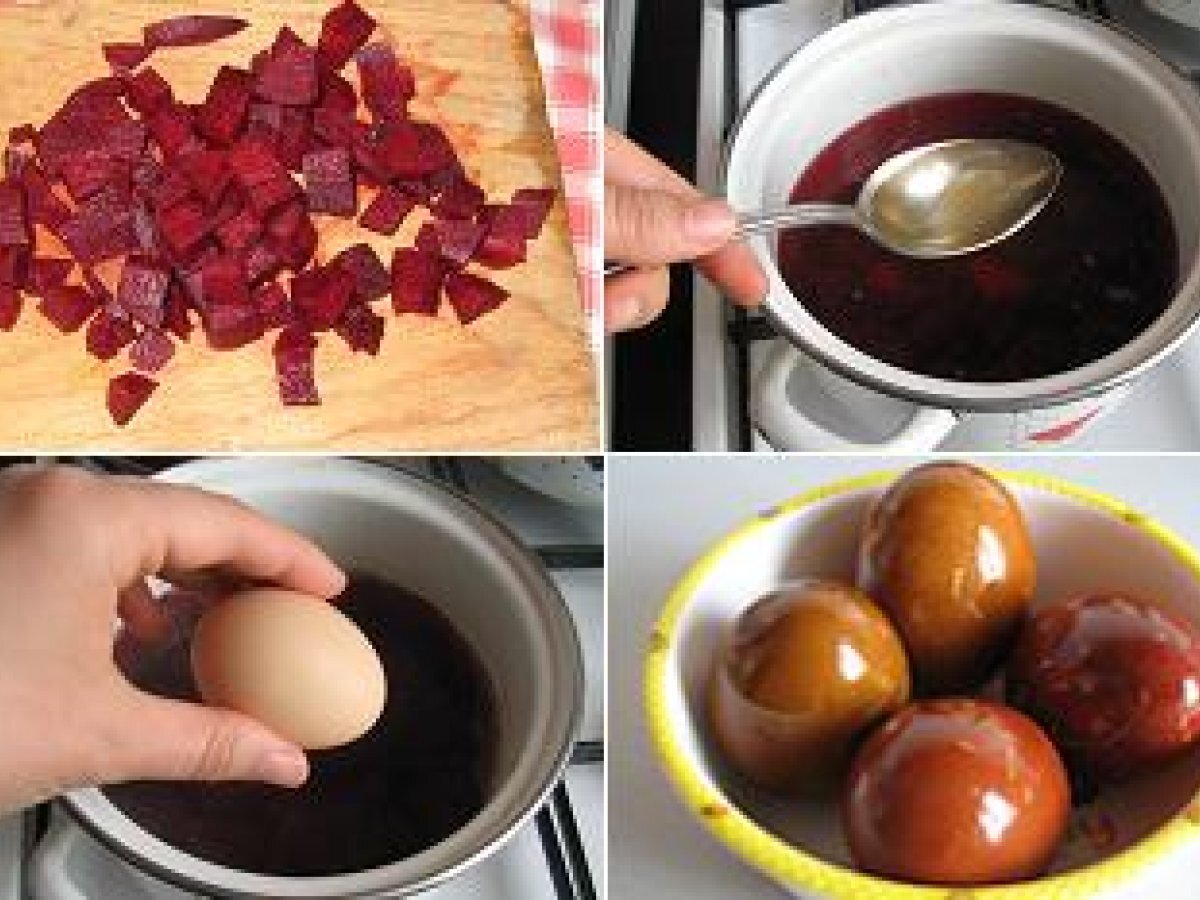 Oua de pasti vopsite natural PrecedentulUrmătorul AperitivFoarte ușor45 min Trimite unui prieten Printează pagina Adresează o întrebare autorului Postează o poză cu rețeta gătită de tine Ingrediente 4 cojile de la 1 kg de ceapa rosie, 5-6 lingurite de cafea, 1 sfecla rosie, oua, apa, 3 linguri otet.