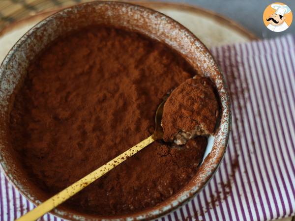 După ovăzul cu fructe roșii, descoperiți această versiune irezistibilă de tiramisu! Imaginați-vă: dulceața fulgilor de ovăz, cremozitatea iaurtului elvețiene, aroma intensă a cafelei și acea atingere fină de cacao... O trezire delicioasă, cu o textură cremoasă și un gust care amintește de celebrul desert italian. În plus, nu este nevoie să gătești dimineața! Doar amestecați totul cu o seară înainte, lăsați să se odihnească în frigider și veți avea un mic dejun ultra-confortabil gata de savurat imediat ce vă treziți ;)