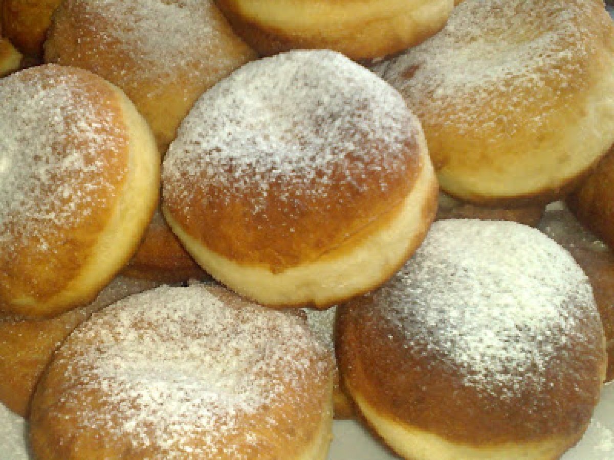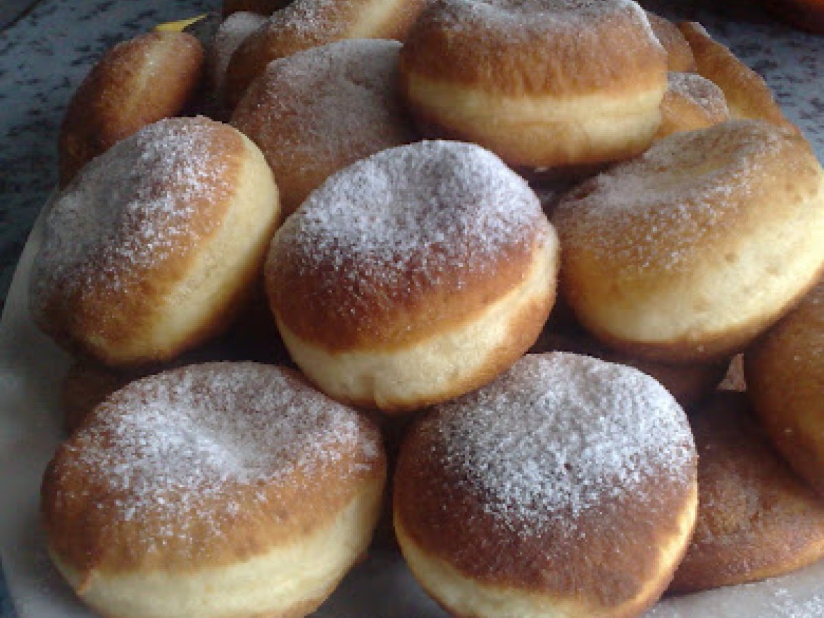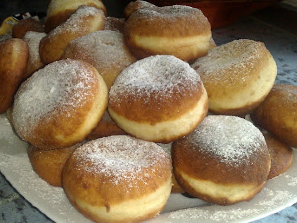 Pancove (gogosi) PrecedentulUrmătorul AperitivFoarte ușor50 min Trimite unui prieten Printează pagina Adresează o întrebare autorului Postează o poză cu rețeta gătită de tine Ingrediente 6 500 g de faina 2 oua (Laura a pus doar galbenusuri) 1 cana de lapte caldut 1 lingura rasa de drojdie deshidratata sau 25 g de drojdie proaspata 60 g de unt 1 zahar vanilat 2 linguri de zahar 1 praf de sare coaja de lamaie si (sau) portocala ulei pentru prajit zahar praf pentru pudrat la urma
