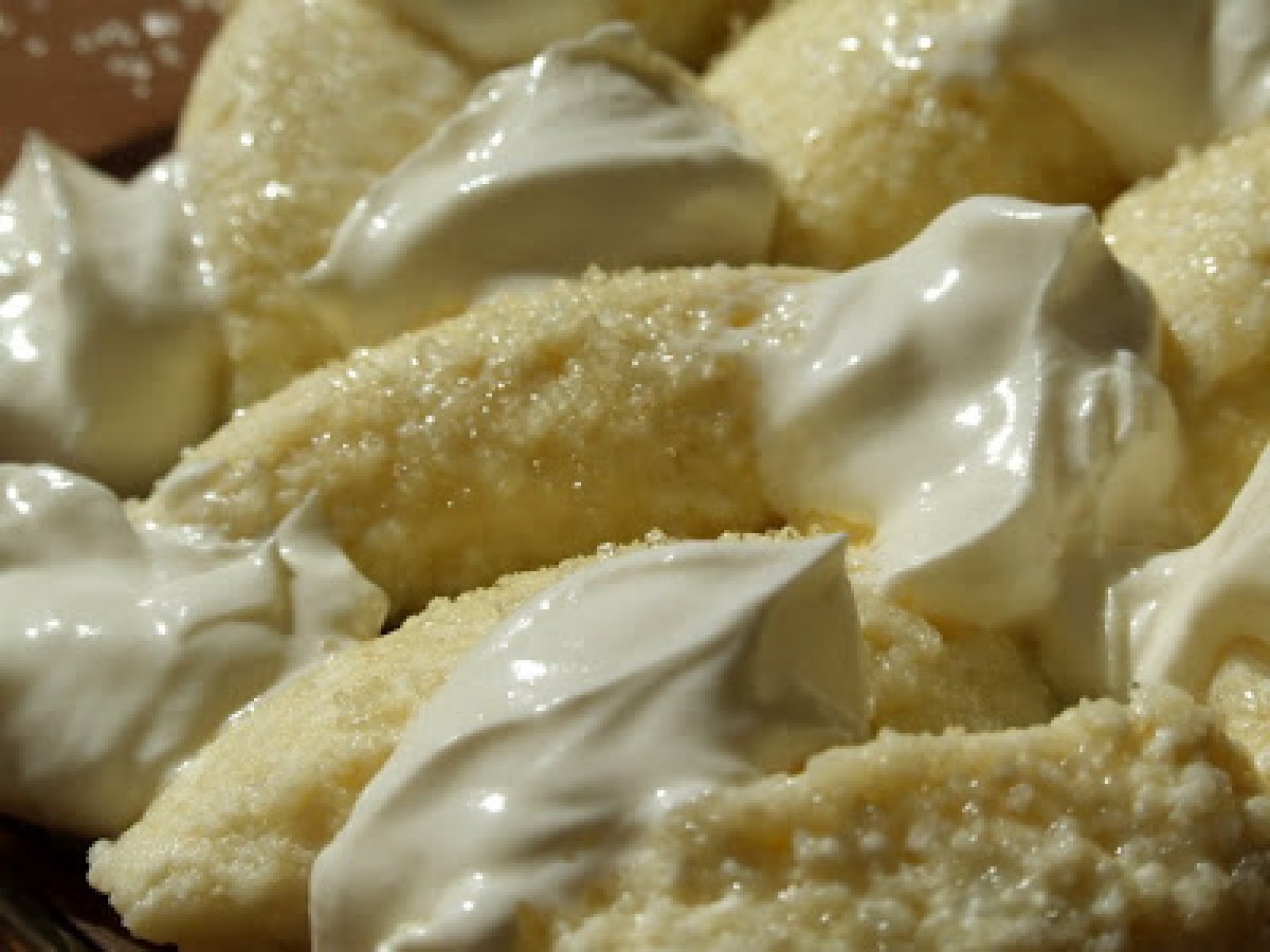 Papanasi cu branza de vaci PrecedentulUrmătorul AperitivFoarte ușor40 min Trimite unui prieten Printează pagina Adresează o întrebare autorului Postează o poză cu rețeta gătită de tine Ingrediente 4 400 g. branza de vaci 2 oua un praf de sare 60 g. gris 20 g. unt 80 g. smantana 40 g. zahar apa pentru fiert papanasii