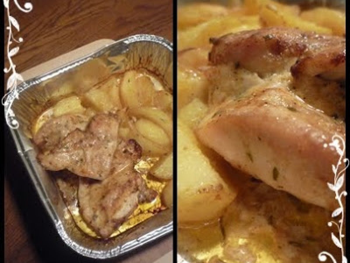 Piept de pui cu cartofi la cuptor/chicken with baked potatoes/pollo con patate al forno AperitivFoarte ușor1 h 20 m Trimite unui prieten Printează pagina Adresează o întrebare autorului Postează o poză cu rețeta gătită de tine Ingrediente 4 1 piept de pui 2-3 cartofi mai mici 2-3 catei de usturoi pisati putina zeama de lamaie patrunjel verede tocat(2-3 frunze) sare, piper, vegeta, paprika,rozmarin unt ulei